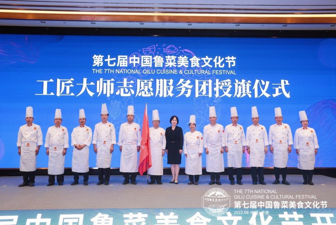 在本次中國魯菜美食文化節啟幕儀式上,由12名魯菜大師組成的濟南市飯店業協會“工匠大師志愿服務團”正式成立,并舉行授旗儀式。該團隊將在整個活動季過程中,積極參與志愿服務活動,聯動不同社區舉辦線下活動,以弘揚魯菜文化,倡導綠色健康生活為主題,在現場制作各款美食與百姓互動。除進社區外,還將走進校園現場為學生制作精美菜品或非遺技藝,講解制作工藝,推動美食啟蒙,定格魯菜傳承記憶。通過對話互動,強化魯菜文化認知,傳承工匠精神,引領培養“光盤行動”“公筷公勺”“節約餐飲”消費理念,倡導綠色消費新風尚。