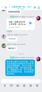 疫情影響,同時為做好今年畢業生黨員離校前教育、管理和服務工作,5月23日,我院學生第一黨支部特此召開線上會議,組織2020屆本科畢業生黨員集中在線進行組織關系轉移相關事宜培訓,保證畢業生黨員組織關系轉接工作有序進行。本次參加集中教育的畢業生黨員人數共30人。