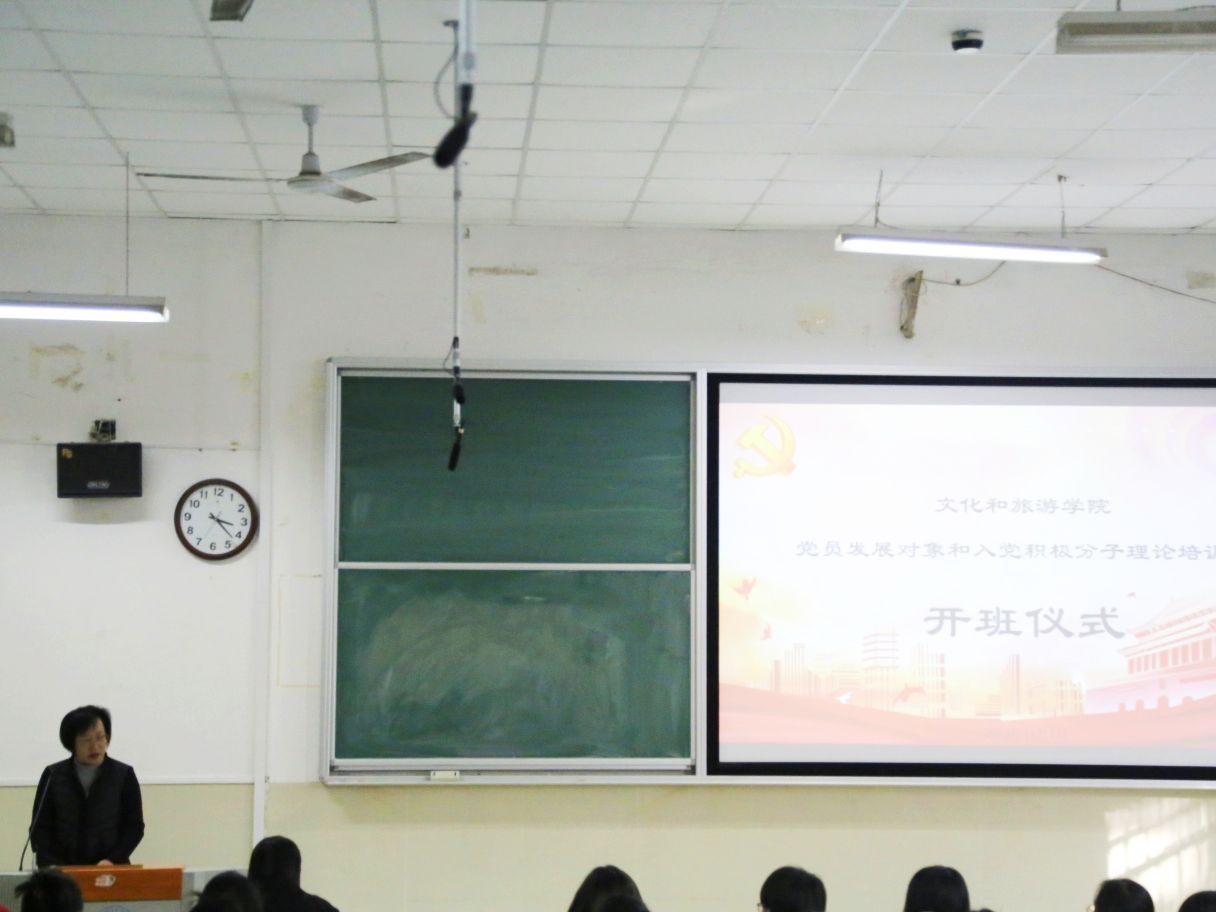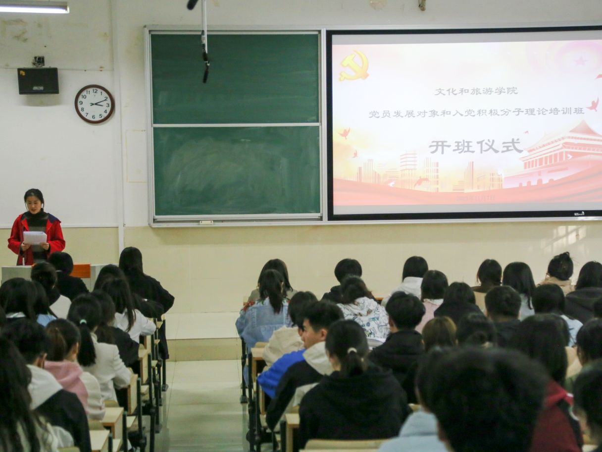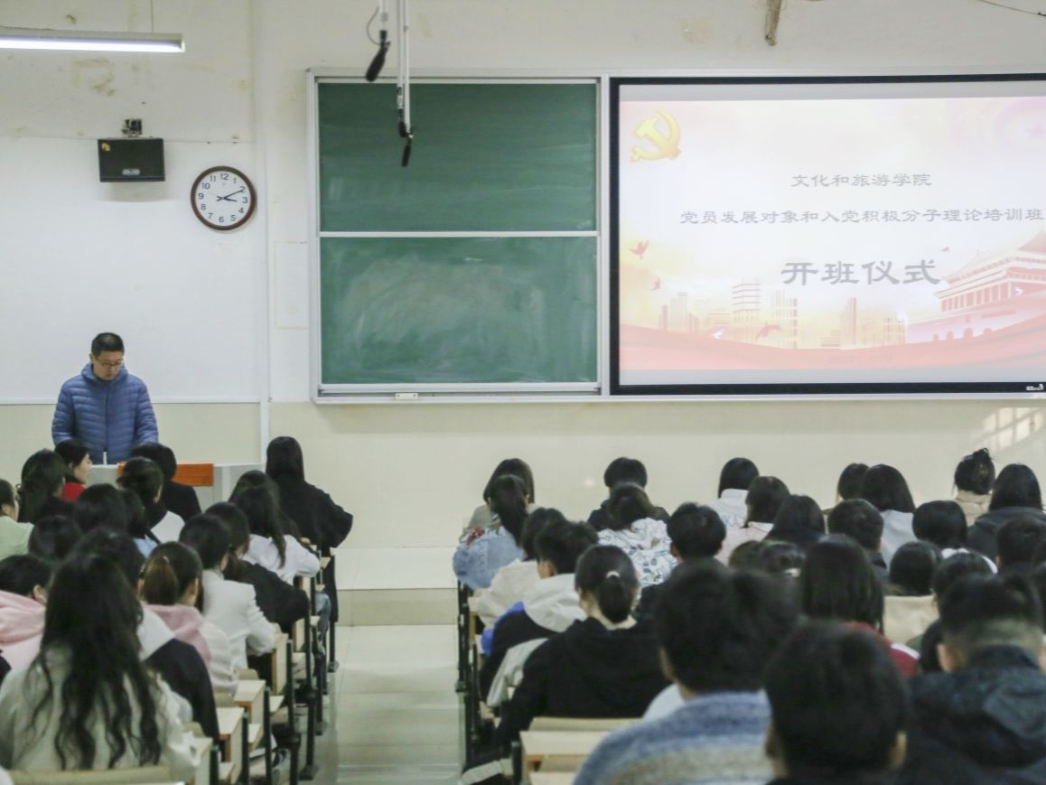 為學習貫徹習近平新時代中國特色社會主義思想和黨的二十大精神,深入貫徹落實新時代黨的建設總要求和新時代黨的組織路線,做好學院黨員發展工作,文化和旅游學院于11月7日在文旅樓階梯教室舉行2023下半年黨員發展對象和入黨積極分子開班儀式。