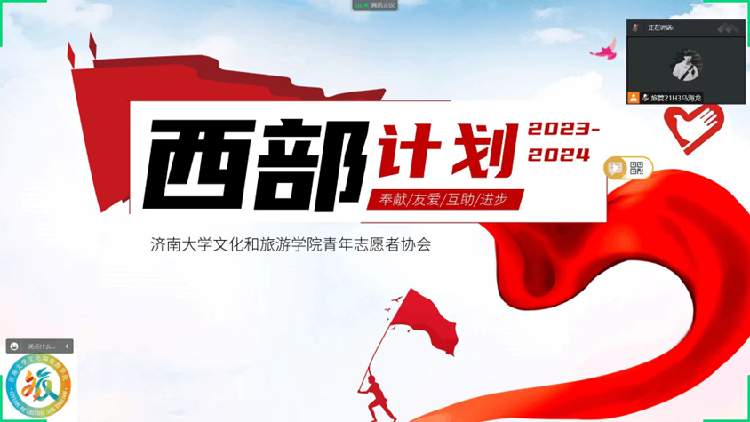 為宣傳2023-2024年度大學生志愿服務西部計劃實施方案,倡導“奉獻、友愛、互助、進步”的志愿者精神,鼓勵應屆畢業生參與西部計劃,濟南大學文化和旅游學院青年志愿者協會帶領全體成員于5月12日在線上開展西部計劃宣傳活動。