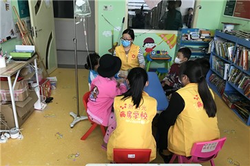 本次病房學校活動在輕松愉悅的氣氛中進行。在玩具消毒、座椅擦拭、地板清洗等準備工作后,志愿者們協助老師一齊幫助孩子們描繪眾多動畫形象。參與其中的兒童也達到了史上最多。起初,一名志愿者負責一名兒童,后來增加至兩名,三名……孩子們專注的樣子,純真地表達著他們對繪畫的喜愛,對志愿者的喜愛,對生活的熱愛,對整個世界的愛。