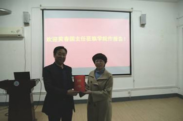 報告結束后,我院黨委書記牛瑞斌、院長林吉玲對黃春國主任給予歷文學院教學科研與人才培養的支持表達了謝意,表示將進一步和市中區文創園區共同打造新型高效的產學研合作關系。林吉玲院長向黃春國主任頒發了客座教授聘任證書。