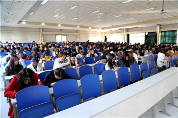 下午三點半,會議正式開始。會議伊始,李老師向同學們展示了自己大學時代的照片,用親身經歷來說明考研的重要性。緊接著,他又對各個高校進行對比分析,鼓勵同學們既要立志高遠,又要認真規劃,持之以恒。在考研學校與專業的選擇上,他給出三條建議:一是評估自我,準確定位;二是收集資料,多做真題;三是理智報考專碩、學碩,不可盲從他人。會議現場十分熱烈,在場的三百多位同學中,有人苦于尋找合適的學校,有人缺乏考研經驗,更多人還在觀望猶豫,李軍保老師的講座為他們打開了一扇新的大門,許多人會議結束后紛紛詢問李老師考研事宜。下午四點半,會議圓滿結束。
