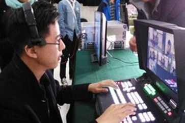 為了給同學們營造更加專業的學習實踐環境,活動現場布置了傳統的三機位EFP(電子現場制作)系統和虛擬演播室系統,并搭建了方便進行導播實踐的小型舞臺供師生操作演練。活動當中同學們參與熱情高漲,積極踴躍地組成4人臨時攝制小組進行現場導播演練,更有傳媒14級學生關冬強、吳婷婷的歌曲助演為整個活動增色。本次實踐教學活動打破常規教學模式,本著以人為本的教育理念,讓學生真正參與到導播實踐活動中,使師生們以最快捷、最經濟的方式了解并體驗前沿影視媒體技術和先進理念,拓寬了學生的專業視野,淬煉了學生的實踐精神,激發了學生對專業技能學習的興趣與熱情,為學生的專業學習和實踐創新奠定了基礎。