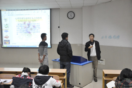會議開始,《感恩的心》、《在路上》等膾炙人口的歌曲,真摯的歌詞和動人的旋律立刻把同學們帶入了溫馨的氛圍中。隨后“贏在中國”的視頻勉勵莘莘學子不畏懼挑戰(zhàn),時刻對未來充滿信心,引起了同學們的共鳴。隨后,牛書記與在座同學們進行了互動,向同學們介紹了心理健康的評價標準和心理咨詢的相關問題,同學們積極參與配合,氣氛融洽,效果頗佳。最后,播放了心理治療的實例視頻,同學們進一步了解到了心理咨詢的形式和內容,報告在一片熱烈的掌聲中圓滿落幕
