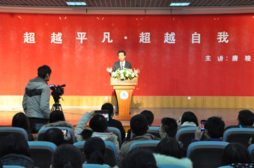 唐駿的話鞭辟入里,都是針對學(xué)生實(shí)際和職場實(shí)際展開演講。唐駿強(qiáng)調(diào),一個(gè)人在大學(xué)里,最關(guān)鍵的是要有理想、有追求,不斷實(shí)現(xiàn)新跨越,不斷打造更精彩的自己。“性格決定命運(yùn)!”一個(gè)擁有好的性格的人更容易得到機(jī)遇的青睞,唐駿先生用自己的親身經(jīng)歷告訴大家,傲視困難,笑對挫折,持之以恒,堅(jiān)持,堅(jiān)持,再堅(jiān)持,我們就會(huì)成功!