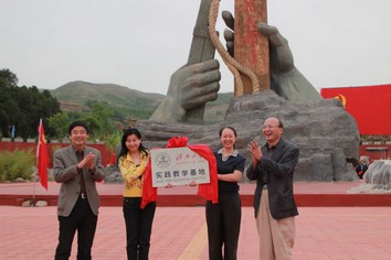 沂水縣挖掘當(dāng)?shù)刭Y源,科學(xué)規(guī)劃旅游產(chǎn)業(yè),發(fā)展文化產(chǎn)業(yè),其旅游產(chǎn)業(yè)增加值在山東省縣域經(jīng)濟中位居前列,創(chuàng)造了若干先進經(jīng)驗,其中最重要的經(jīng)驗是抓住了“文化產(chǎn)業(yè)創(chuàng)意”這一核心環(huán)節(jié)。歷史與文化產(chǎn)業(yè)學(xué)院與沂水縣人民政府協(xié)商,決定建立長期合作關(guān)系,學(xué)院將組織力量為革命老區(qū)的文化產(chǎn)業(yè)發(fā)展提供智力支持,沂水縣將為高校的人才培養(yǎng)提供實踐教學(xué)條件。院長江奔東與沂水縣人民政府副縣長范春生為實踐教學(xué)基地揭牌。