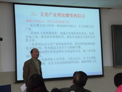 為使學院學生進一步提高對文化產業的認識,增強專業技能,11月18日下午,歷史與文化產業學院在11教1段102室舉辦以“文化產業理論的嬗變”為主題的講座。院長江奔東教授擔任講座主講,學院黨委書記賈海寧、老師代表和文化產業管理專業學生聆聽了此次講座。