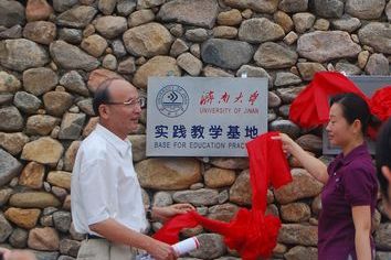 濟(jì)南大學(xué)副校長張碩秋、泰山風(fēng)景名勝管理委員會副主任劉慧、以及歷史與文化產(chǎn)業(yè)學(xué)院院長江奔東、泰山封禪大典文化發(fā)展有限公司常務(wù)副總經(jīng)理蔣蓉共同為兩個基地揭牌。