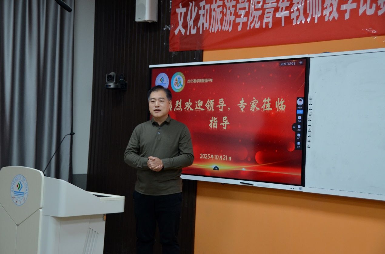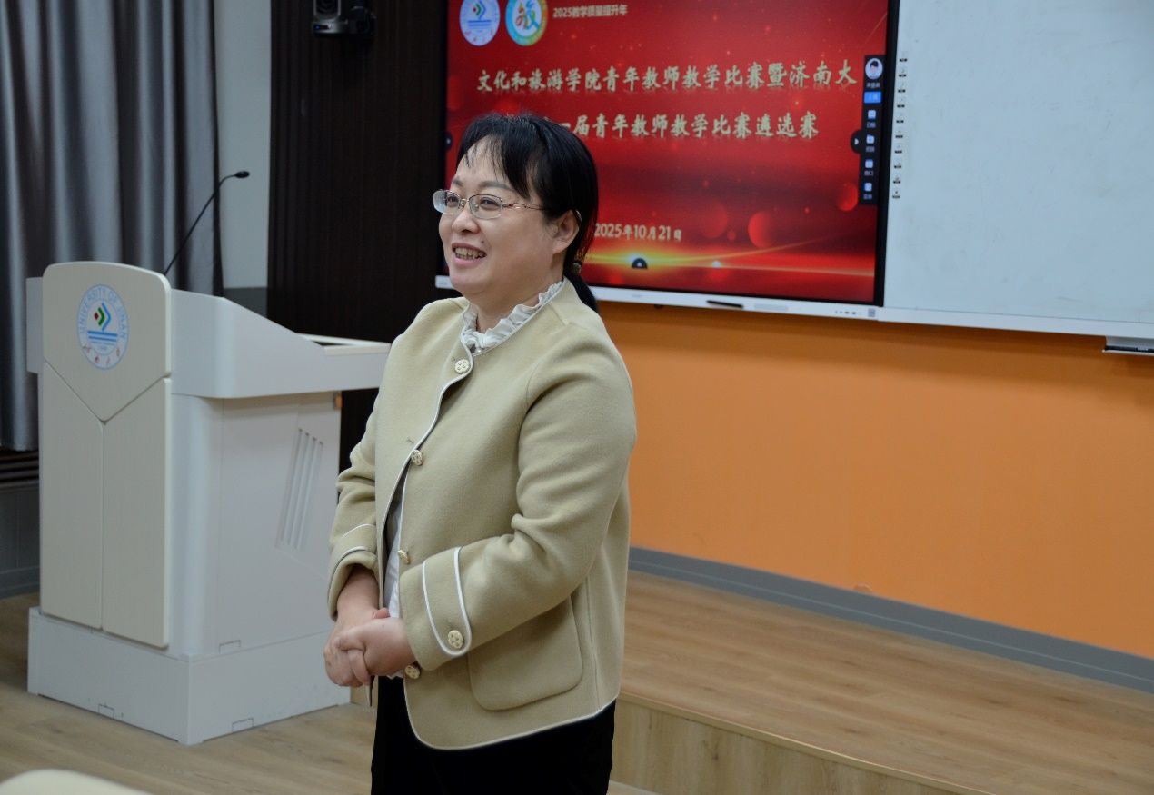 10月21日,文化和旅游學院于舜耕校區(qū)D1-1合堂教室成功舉辦了首屆青年教師教學比賽暨學校青教賽遴選賽。本次比賽特邀黨委教師工作部部長、教師發(fā)展中心主任、山東省高校教學名師張婷,山東省、濟南大學教學比賽獲獎教師呂洪波、胡麗華、魯毅、張曉偉、王宇倩、羅婧擔任評委,符合參賽條件的青年教師全部參加比賽,學院教學督導組成員、教師代表及優(yōu)秀學生到場觀摩。比賽由學院副院長馬修倫主持。