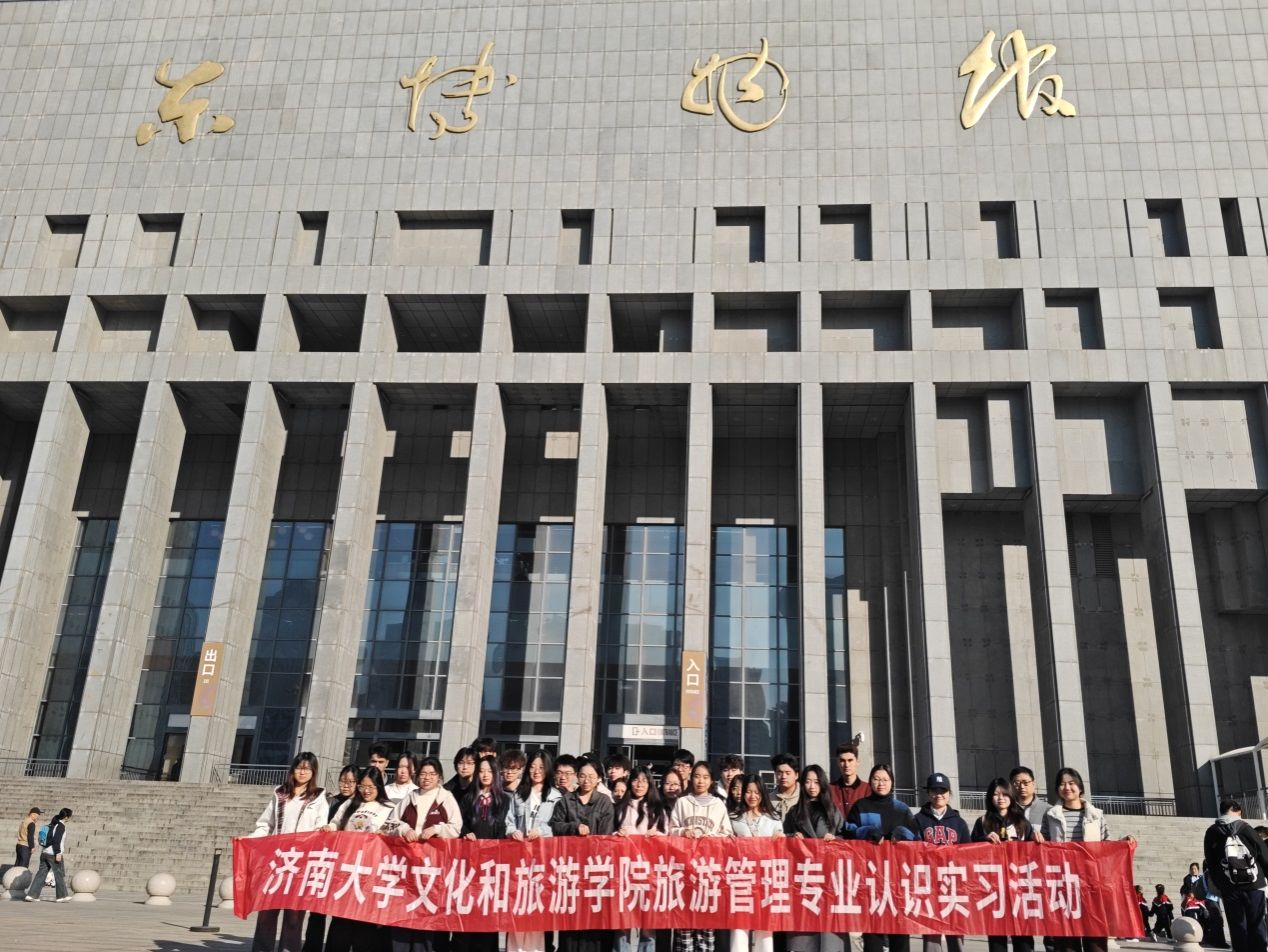 在濟南綠地美利亞酒店和魯能希爾頓酒店,學生通過實地參觀、交流座談與現場模擬等途徑,學習了酒店的企業文化、服務設施配置、各崗位的工作內容及服務要點等。在山東博物館,學生現場分組模擬導游講解,領略了山東的歷史文化和地域特色,對文創商品設計與開發、業態布局及展品數字化展示進行了全面了解。在大明湖景區,學生對景區旅游資源的分布、功能分區與商業設施進行了深入考察,并分組開展了關于大明湖景區新業態與旅游新市場的問卷調研工作。