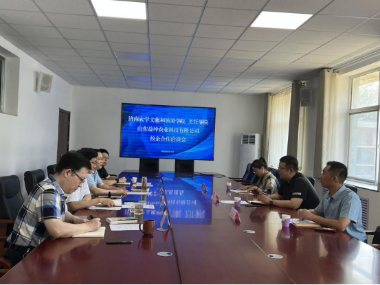 6月13日上午,高密市膠河社區黨委書記姜義濤、山東益坤農業科技有限公司總經理隋奇,總監張振美等一行來濟南大學文化和旅游學院進行校企合作洽談。學院黨委書記孟德洋,院長劉建波,副院長張炳文,食品科學與營養系主任湯衛東參加會議。座談會由副院長張炳文主持。