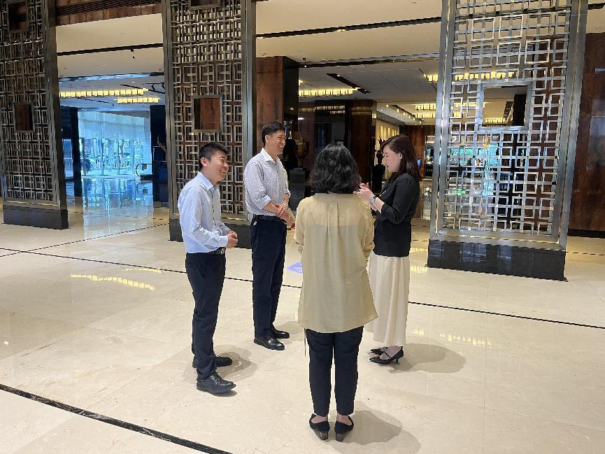 酒店相關負責人介紹了酒店概況、學生的實習情況以及對學生的實習實踐過程和具體工作安排,并對實習生把教材知識轉為實踐的能力表示了肯定,對學生在實習過程中表現出的良好狀態和取得的成績表示贊揚。孟德洋一行參觀了富力凱悅酒店,對酒店為學生提供的良好實習環境和鍛煉機會表示感謝,希望實習基地加強對實習生嚴格管理,幫助學生更好的將理論與實踐結合,提升學生的實踐能力與專業水平,使學生在實習工作中有所獲、有所得、有所學、有所悟。同時,希望酒店為學生提供不同的鍛煉崗位,讓學生全面發展;希望酒店多多關心關愛學生的成長成才,引導教育學生健康成長。