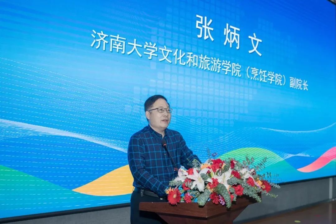 濟南大學文化和旅游學院副院長張炳文教授在代表輪值理事長單位發言時表示,濟南大學作為我國第一批開辦烹飪本科教育的院校,秉承“中華傳統餐飲與現代食品科學相融合”的專業建設理念,2003年開始招收“烹飪與營養教育”本科生,最近正申報國家新設立的“食品與營養”專碩學位點。作為共同體發起單位之一,將充分發揮烹飪高等教育的龍頭作用,著力推進教育與產業深度融合,全面支持共同體相關學校專業設置、人才培養模式創新,努力建設魯菜產業人才培養新高地。濟南大學文旅學院將與各位同仁一道,借助共同體這個平臺,做好“科學評價魯菜、文化解讀魯菜”“講好新魯菜的科學故事、講好新魯菜的文化故事”等系列工作。