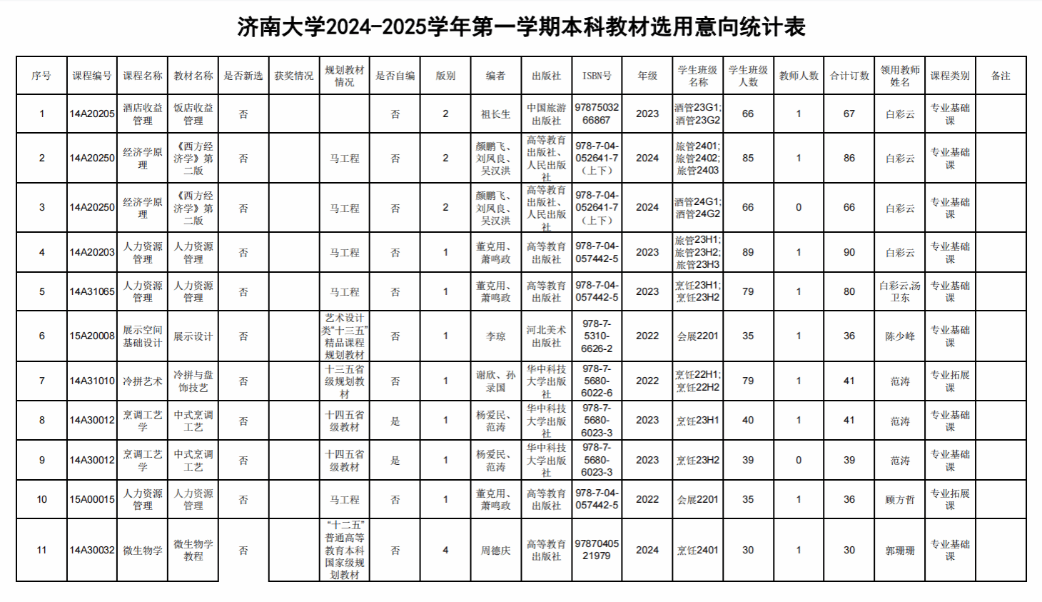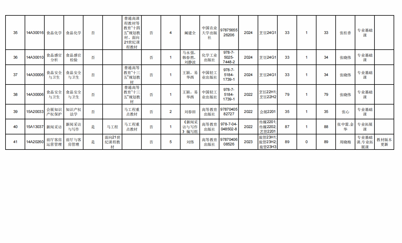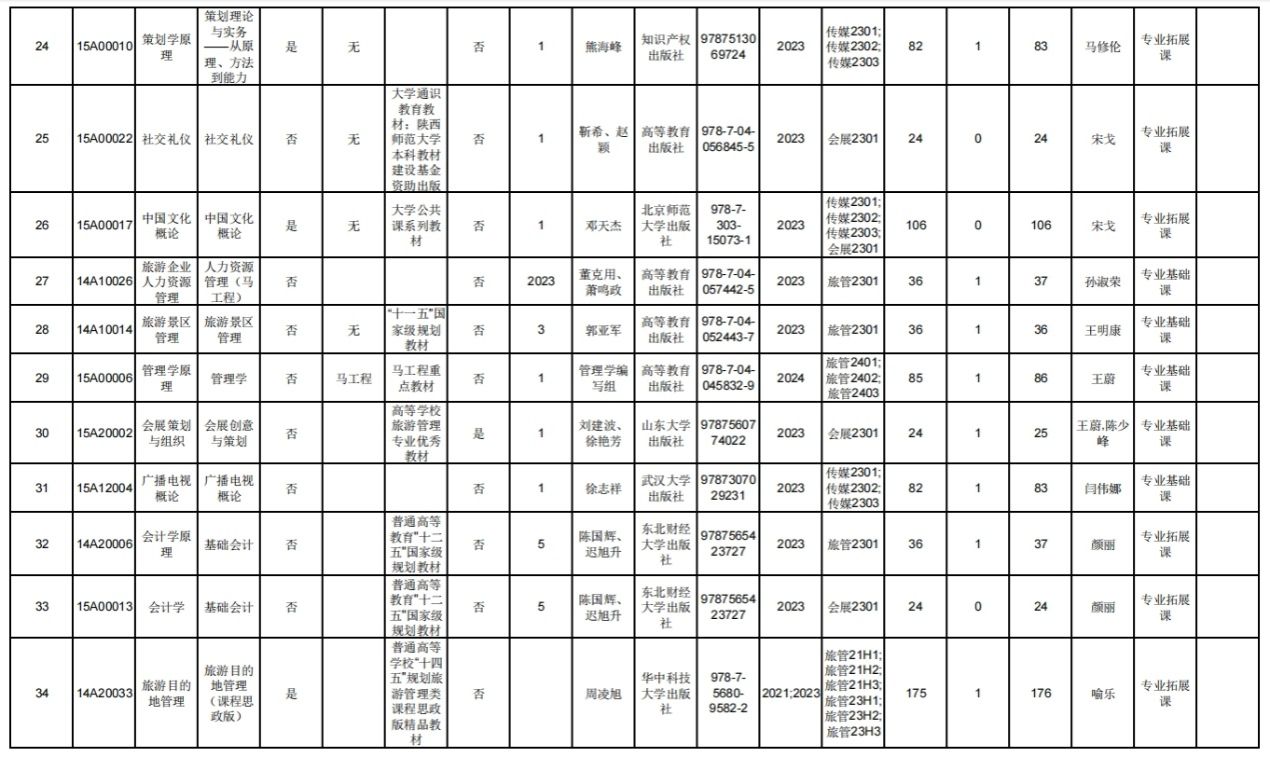 文化和旅游學院2024-2025學年第一學期本科教材選用情況公示