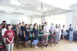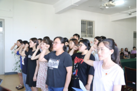 7月3日下午歷史與文化產業學院學生黨支部、行政黨支部于第三教學樓508室召開預備黨員入黨宣誓大會。我院黨委副書記、副院長柳春,學院行政黨支部書記黃延德,學生黨支部書記武秀娟,團委書記田海鵬,學生黨支部委員宋戈、楊倩、馬能忠出席會議,行政黨支部預備黨員教師米澤以及我院學生黨員、預備黨員、入黨積極分子共51人參加會議。學生黨支部書記武秀娟主持會議。