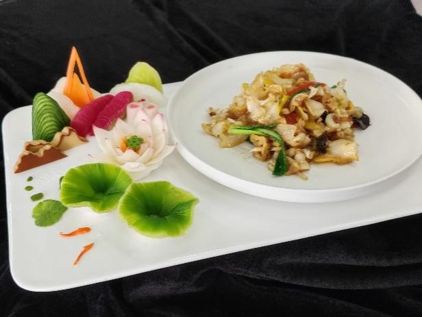 5月20日,同學(xué)們迎來了期待已久的大師課堂。國家級烹飪名師王振才現(xiàn)場演示經(jīng)典魯菜制作。“油爆海螺”選料講究,爆炒時火猛手快,10秒的精準把控,讓海螺肉脆嫩鮮香;“茄汁大黃魚”現(xiàn)殺現(xiàn)做,茄汁酸甜比例完美,魚肉鮮嫩無比。同學(xué)們近距離觀察,深刻體會到魯菜“一菜一格,百菜百味”的精髓。下午,西式烹飪大拿江云濤老師圍繞三文魚,帶來五道創(chuàng)意菜式教學(xué)。從食材挑選到烹飪技巧,從擺盤美學(xué)的色彩搭配到營養(yǎng)邏輯的運用,無不展現(xiàn)出西餐對細節(jié)的極致追求,讓同學(xué)們對國際化餐飲趨勢有了初步認知。
