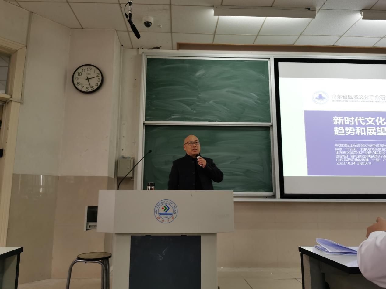 為深入學習黨的二十大精神,貫徹習近平新時代中國特色社會主義思想融入學科教育。在濟南大學建校75周年之際,10月26日下午,文化和旅游學院邀請孫吉國研究員進行了《新時代我國文化產業實現高質量發展的路徑選擇》的主題報告。報告由副院長馬修倫主持,文化經營管理系支部書記趙斐、主任寧秀麗、教師代表、文管系學生參加了活動。