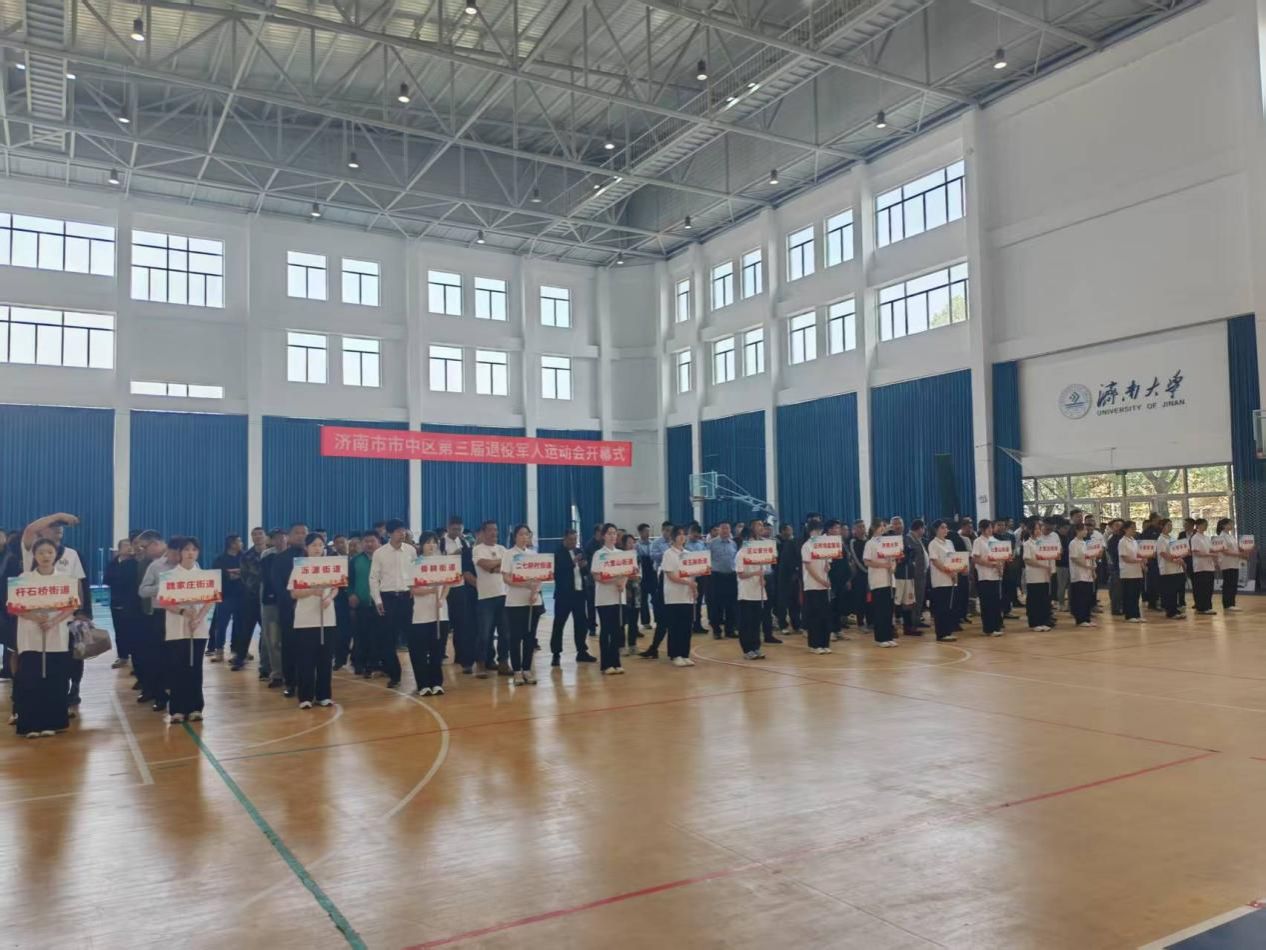 4月28日,由濟南市市中區退役軍人事務局主辦的第三屆退役軍人運動會暨籃球比賽在濟南大學舜耕校區體育館開幕,各街道均派出代表隊參與本次開幕式。志愿者手持街道標識牌,引導各隊列入場站位。在開幕式中,退役軍人們觀看了濟南大學風暴軍團和翼虎軍團的社員帶來的擒敵拳和倒功表演。一位退役老兵感嘆道:“這些孩子動作里的精氣神,有我們當年的勁頭。”參與本次開幕式的志愿者黃藝琛在采訪時說道:“通過參與本次志愿服務活動,我直觀的認識到‘退役不褪色’絕非一句空洞的口號,而是每一位退役軍人內心深處的錚錚誓言,在以后的學習生活當中,我要嚴格規范自己的言行,用實際行動向他們看齊。”