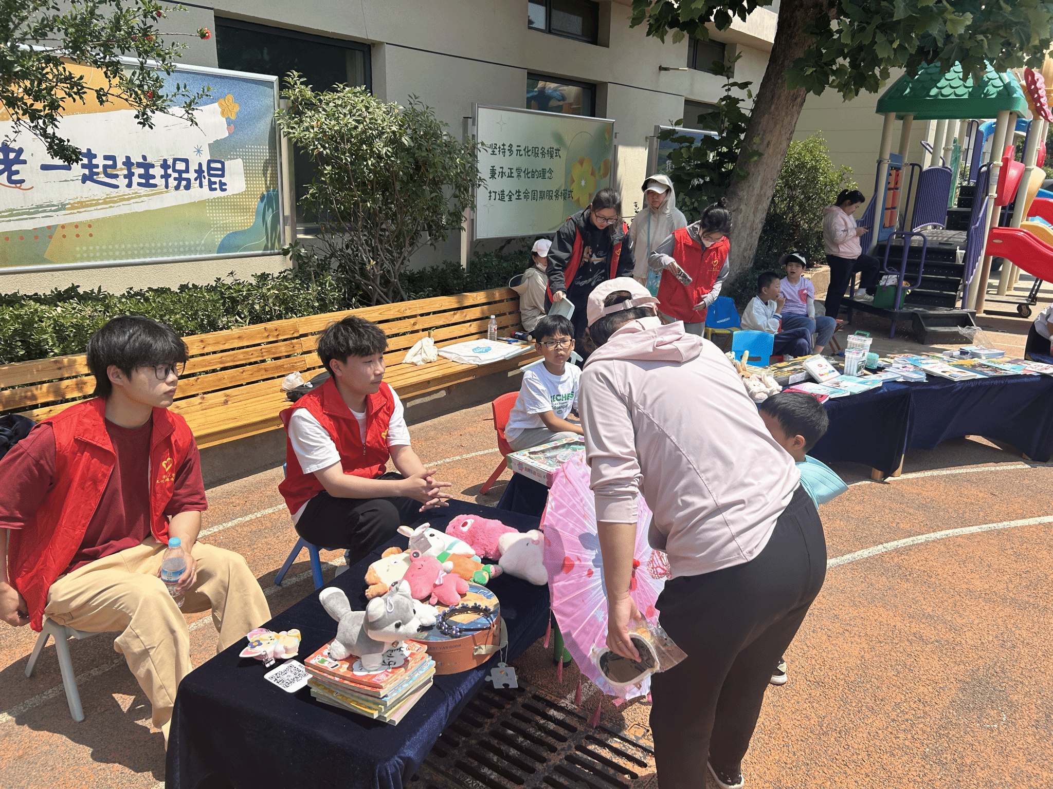 在這場愛意滿滿的活動(dòng)里,濟(jì)南大學(xué)文化和旅游學(xué)院的志愿者們無疑是最溫暖的底色。他們化身貼心陪伴者、耐心引導(dǎo)者,活躍在各個(gè)角落。在以物會(huì)友專區(qū),志愿者們輕聲細(xì)語,幫孩子們挑選商品,分享背后故事;DIY工坊區(qū)中,他們手把手教學(xué),鼓勵(lì)孩子大膽創(chuàng)新;互動(dòng)游戲區(qū)里,志愿者們與孩子們并肩作戰(zhàn),盡情享受歡樂時(shí)光。他們用真誠與熱情,將愛傳遞給每一個(gè)孩子,讓孩子們在活動(dòng)中感受到尊重與關(guān)懷。