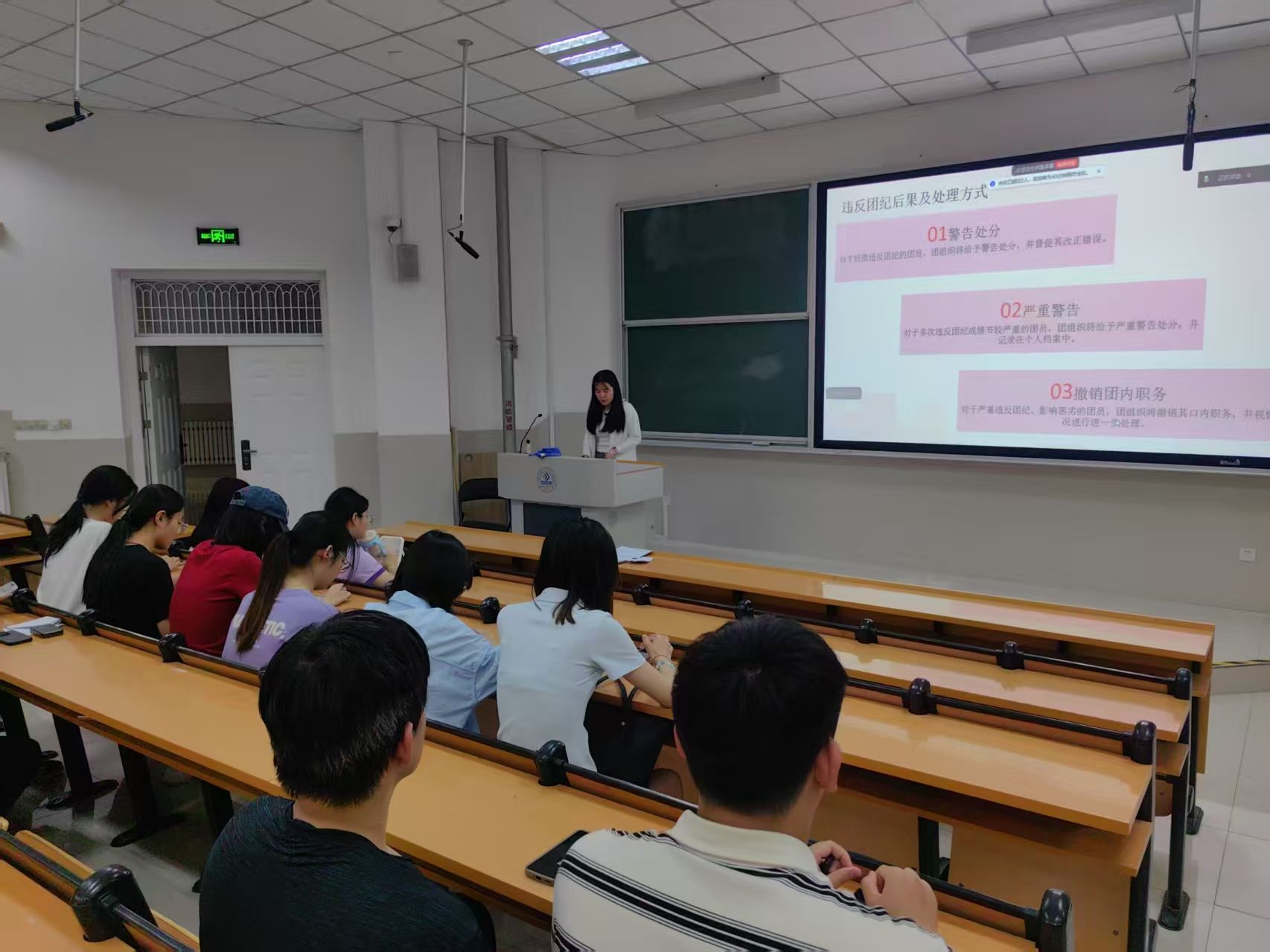 培訓(xùn)伊始,經(jīng)驗(yàn)豐富的團(tuán)干部李超然同學(xué)就團(tuán)務(wù)知識(shí)專題展開培訓(xùn)。培訓(xùn)過程中,通俗易懂的語言結(jié)合豐富的實(shí)際案例,讓團(tuán)干部們對(duì)共青團(tuán)的組織架構(gòu)、團(tuán)員發(fā)展流程、團(tuán)費(fèi)收繳管理等基礎(chǔ)團(tuán)務(wù)知識(shí)有了更細(xì)致的了解。從入團(tuán)志愿書的規(guī)范填寫到團(tuán)支部工作手冊(cè)的嚴(yán)謹(jǐn)記錄,每一個(gè)環(huán)節(jié)都進(jìn)行了詳細(xì)說明,讓團(tuán)干部們對(duì)團(tuán)務(wù)工作有了更清晰、更全面的認(rèn)識(shí)。