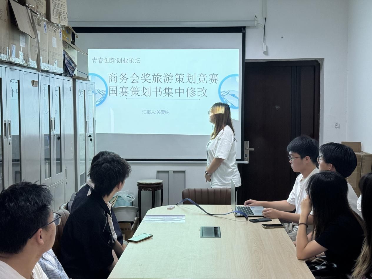 為提高學生參賽作品質量,助力國賽備戰工作,2025年5月21日,文化和旅游學院開展了"青春創新創業論壇——商務會獎旅游策劃競賽國賽策劃書集中修改"活動。本次活動由學院創新創業部干事關愛純同學主持,吸引了十余名參賽學生積極參與。