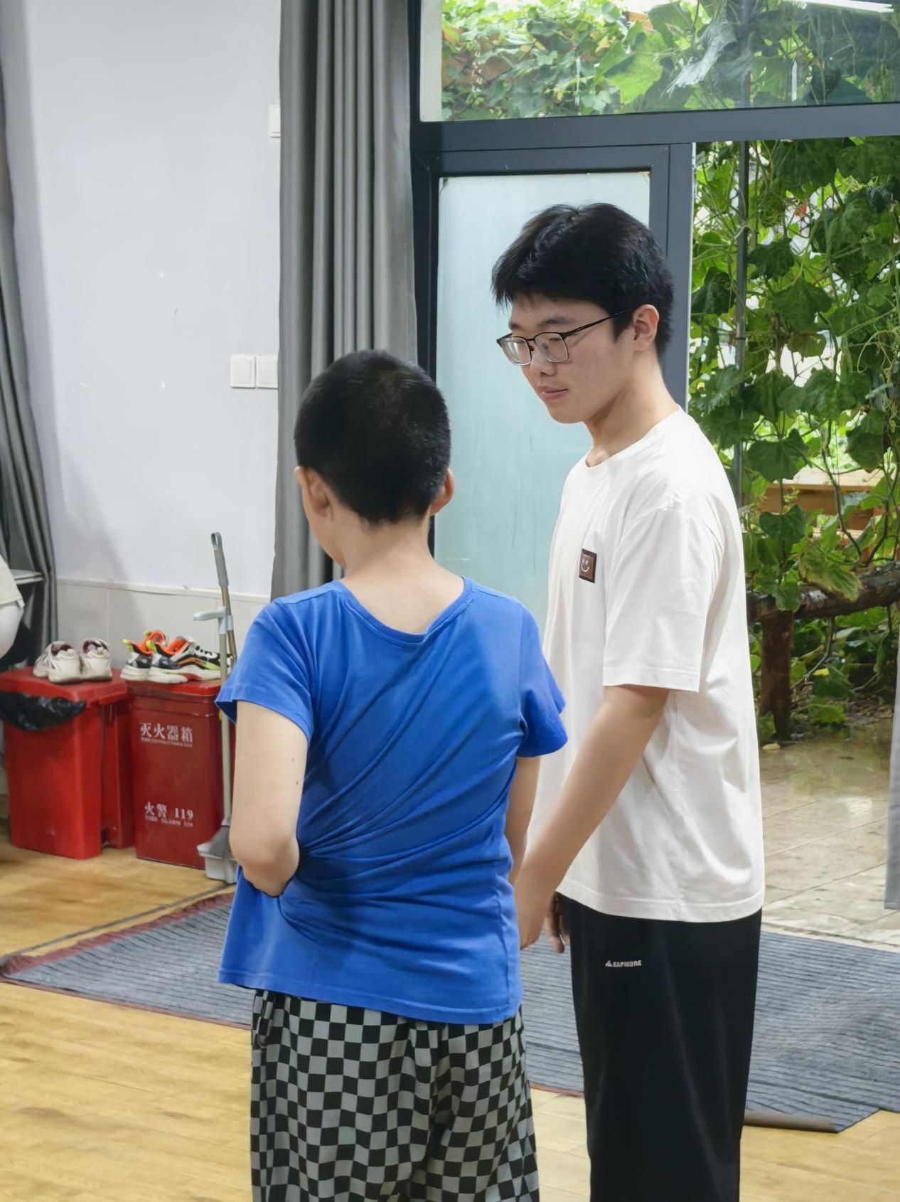 清晨的陽光透過窗欞灑在活動室,團隊成員與孩子們的手輕輕相牽。隨著輕快的音樂響起,大家邁著略顯稚嫩卻充滿活力的步伐緩緩散步。孩子們的目光從最初的羞怯躲閃,逐漸變得明亮柔和。隊員們耐心引導,用眼神鼓勵、用掌心溫度傳遞善意,讓音樂成為溝通的橋梁,讓牽手成為信任的開始。這場簡單的隨音樂散步,不僅鍛煉了孩子們的肢體協調能力,更在無形中拉近了彼此的距離,讓溫暖在旋律中悄然流淌。