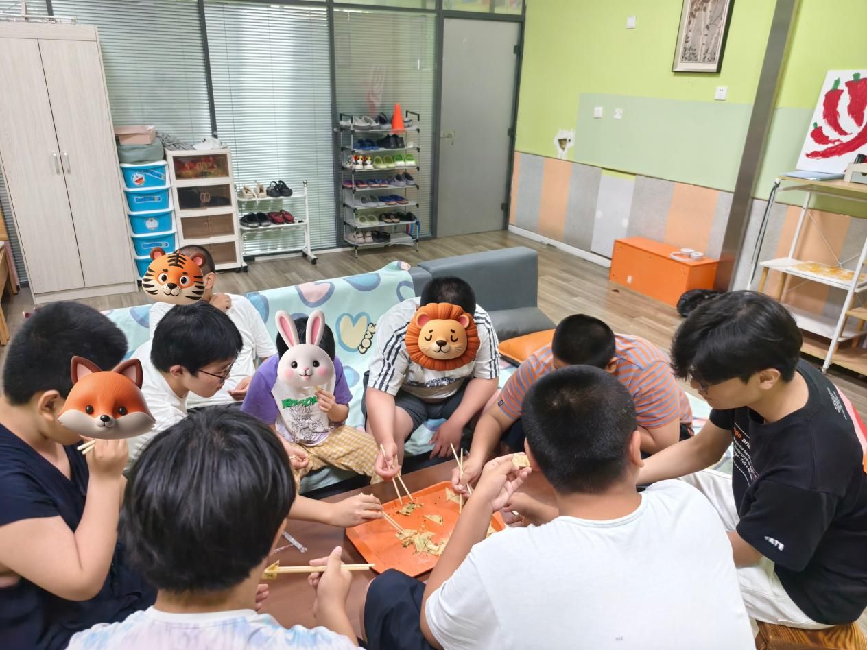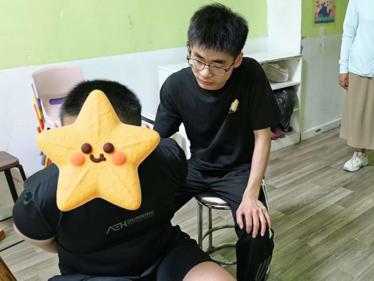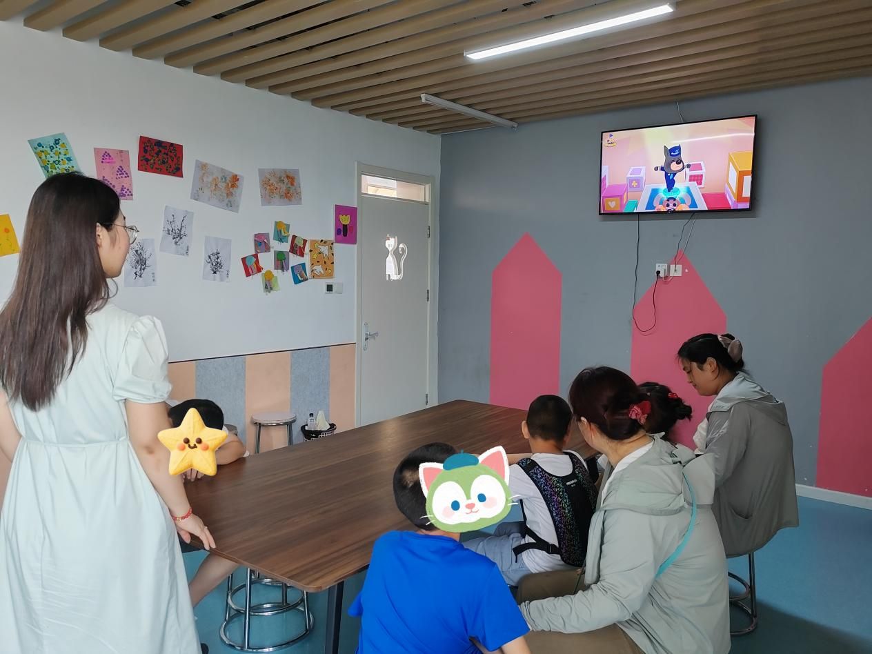 康復中心的課堂上,團隊成員化身為“同行者”,全程參與孩子們的學習時光。認知課上,隊員程明菲與孩子并排而坐,跟隨老師的引導共同感知身體的存在;討論環節,隊員李雨薇耐心傾聽孩子的想法,用鼓勵的話語引導思考;觀看動畫片時,隊員黃藝琛和孩子一起歡笑,適時講解畫面里的故事。當孩子因為難題皺眉時,隊員輕輕點撥思路;當孩子主動分享見解時,隊員及時送上肯定的掌聲。課堂上的并肩同行,不僅為孩子們的學習增添了助力,更讓他們在互動中感受到平等與尊重,讓成長的每一刻都充滿溫暖的陪伴。