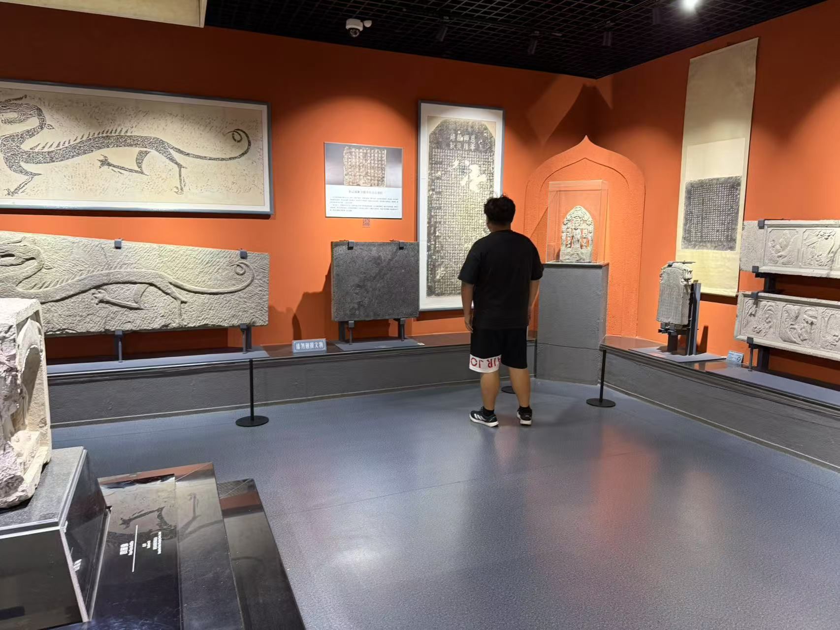 石刻展廳內,團隊成員與參觀者一同佇立在石像、碑刻前,目光輕撫那些被時光打磨的紋路。北魏的佛像造像上,衣紋的流暢弧線里藏著宗教藝術的莊嚴;唐代的墓志銘碑上,楷書的工整嚴謹記錄著逝者的生平;明清的摩崖石刻中,粗獷的鑿痕里透著文人登高望遠的豪情。