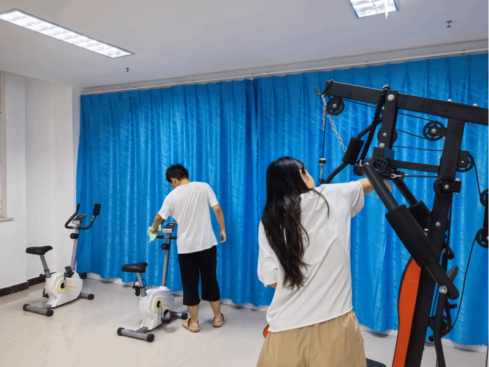 在康復(fù)訓(xùn)練區(qū),實踐團成員們發(fā)現(xiàn)部分康復(fù)器材因長期使用而積灰,可能影響使用體驗和衛(wèi)生安全。于是,他們主動拿起抹布、消毒噴霧等工具,對各類康復(fù)器材進行了全面清潔與維護。隊員們分工明確,李嘉豪、陳穎負責(zé)擦拭上肢訓(xùn)練器、下肢康復(fù)機等大型設(shè)備,仔細清理器械關(guān)節(jié)處的灰塵;李雨薇則專注清潔沙盤、平衡板等小型器具,確保每一個角落都干凈整潔。在清潔過程中,他們還細心檢查器材的功能狀態(tài),發(fā)現(xiàn)松動的螺絲或磨損的部件及時向藥店工作人員反饋,確保器材的安全使用。隊員們不僅用實際行動維護了康復(fù)環(huán)境的整潔,更通過這一過程學(xué)習(xí)了康復(fù)器材的基本功能和使用注意事項,對醫(yī)藥服務(wù)有了更深入的理解。