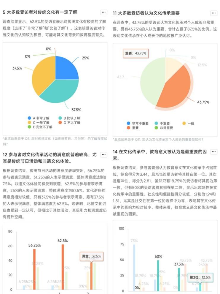 實踐團成員系統性地梳理了“兩個結合”的理論框架,并結合習近平總書記在文化傳承發展座談會上的重要講話精神,深入探討了中華優秀傳統文化在青年群體中的創造性轉化與創新性發展路徑。通過問卷調查和深度訪談,團隊分析了青年學生對文化傳承的認知與參與情況,總結出教育體系融入、社區實踐等可行路徑。通過集中學習和資料整理,團隊為實地調研奠定了堅實的理論基礎,明確了青年在文化傳承中的使命與擔當。