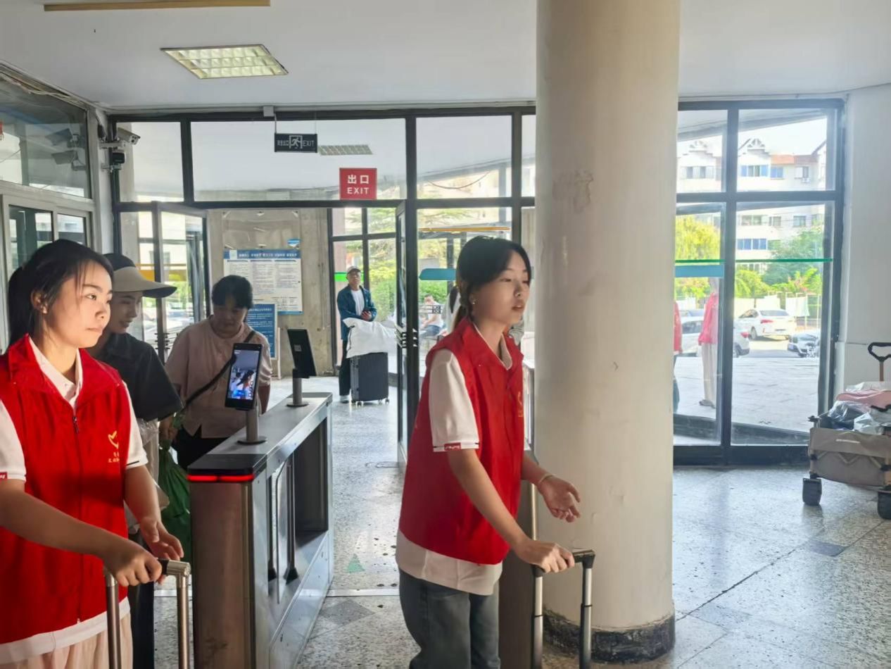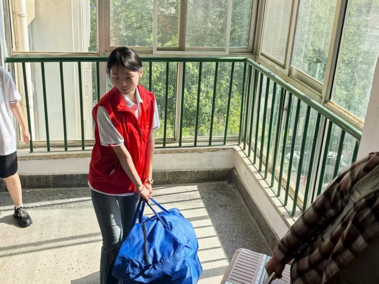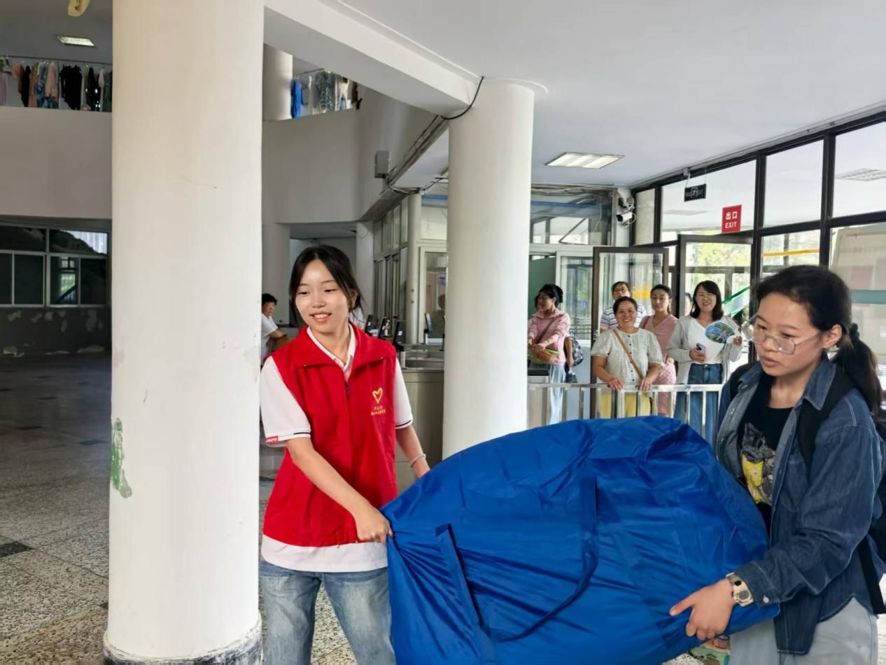活動當天,志愿者們早早到位,分工有序、積極協作。迎新帳篷前,志愿者們耐心解答疑問,協助新生辦理信息登記、材料領取等手續,并細致介紹校園布局、食堂、圖書館等學習生活信息。他們主動上前、伸出援手,幫助搬運大件行李,一路送至宿舍樓下。校門口,志愿者們微笑迎接初來校園的新生與家長,清晰指引報到路線;學生公寓內,同樣忙碌不止——講解設施使用規范,回應各類生活問題,親切交談中傳遞著濟大校園的友好與溫暖。