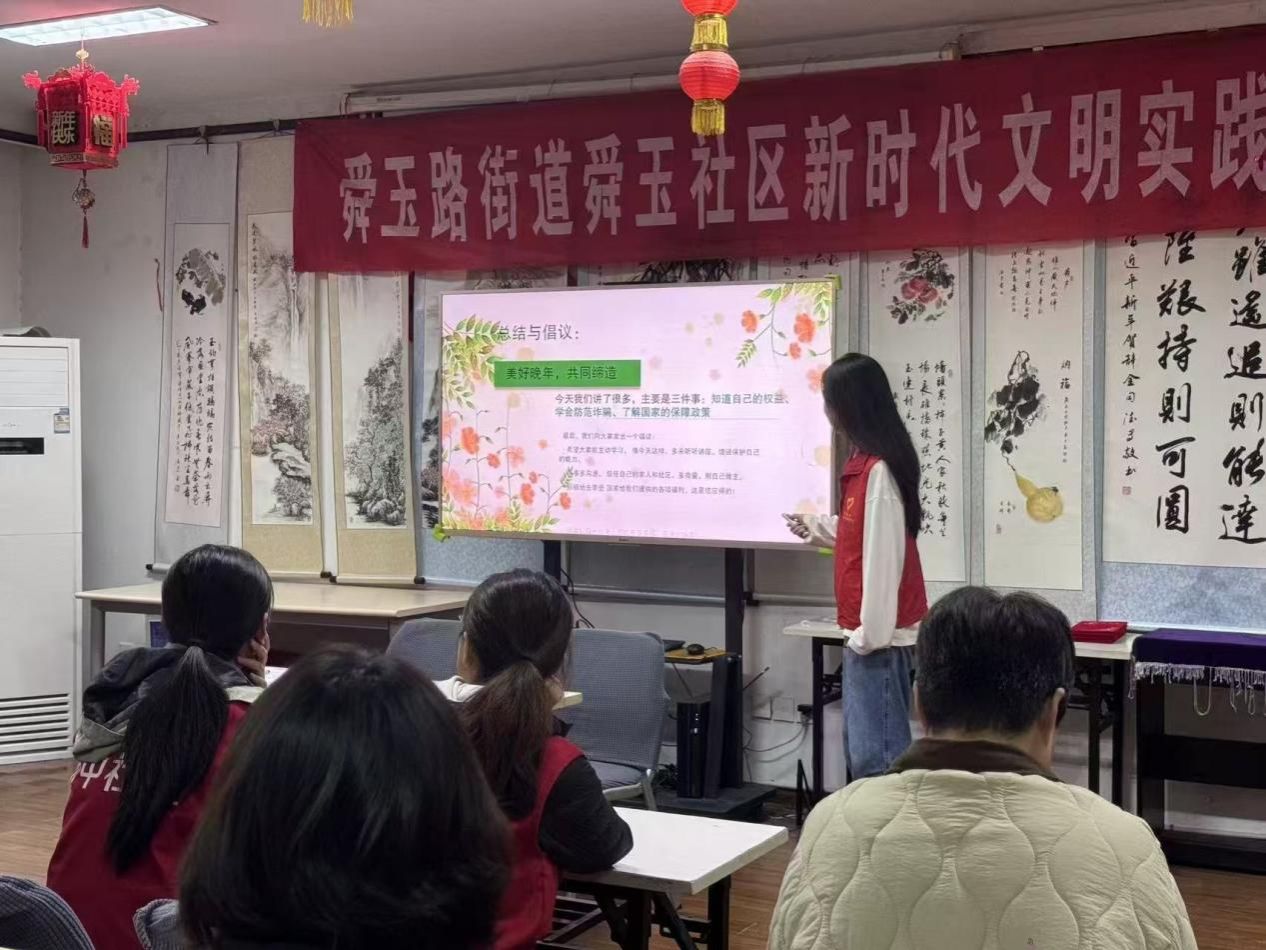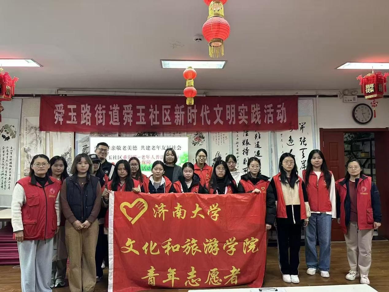 為響應山東省老齡工作委員會對2025年“敬老月”活動的號召,結合當下老年群體法律意識相對薄弱的現實問題。10月17日,文化和旅游學院“逐光”青年志愿者協會聯合濟南大學伴你同行愛心社在舜玉社區開展“孝潤齊魯·法護銀齡”宣講活動,以青春力量助力老年普法行動。此次活動成功與舜玉社區簽署“青春益動”大學生社會實踐項目合作協議。