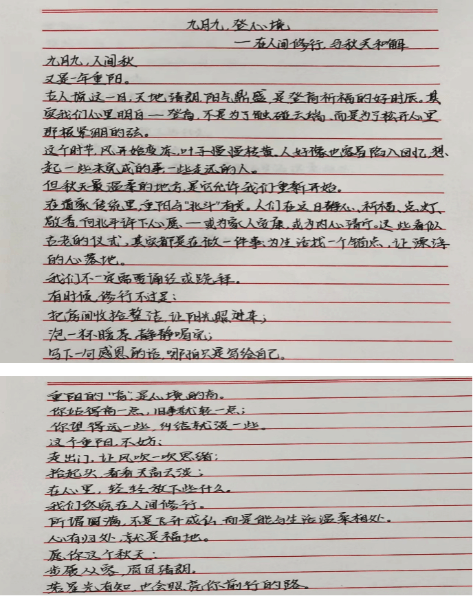 本次活動緊密結合文化與旅游學院的學科特色,將心理健康教育、情感表達訓練與傳統(tǒng)文化傳承有機融合。學生可圍繞“重陽·敬老·感恩·傳承”主題,自主選擇創(chuàng)作形式:書寫現(xiàn)代詩文抒發(fā)對傳統(tǒng)節(jié)日的感悟;撰寫“一封家書”向長輩表達真摯情感;或結合長輩的口頭禪設計專屬表情包、貼紙,以輕松幽默的方式傳遞關愛。