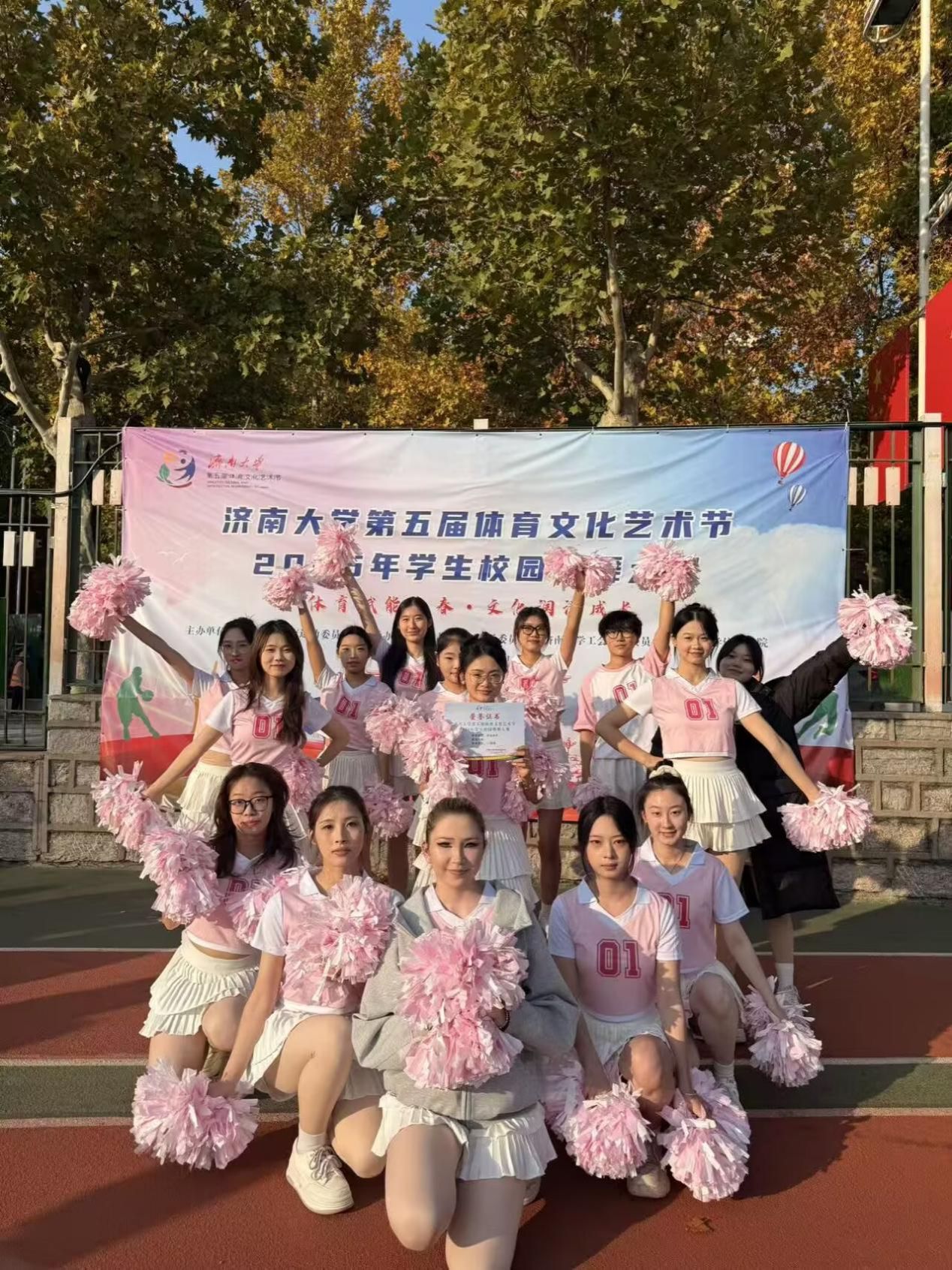 11月5日,濟南大學第五屆體育文化藝術節核心賽事——2025年學生校園排舞大賽在主校區田徑場圓滿落幕。文化和旅游學院代表隊憑借自選曲目《Ice Cream》的精彩演繹,以精準整齊的舞步與獨具巧思的編排嶄露頭角,成功摘得大賽一等獎,充分展現了文旅學子的青春活力與強大的團隊凝聚力。