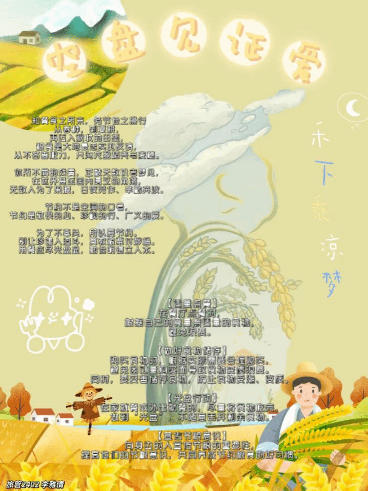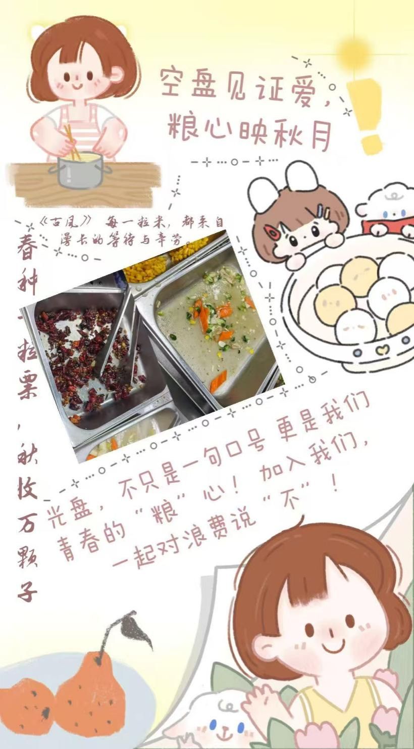 作為校園文化建設的鮮活實踐,活動既為學生搭建了創(chuàng)意表達的舞臺,更以群體參與的方式凝聚了價值共識:當“節(jié)約為榮”成為校園里的青春共鳴,勤儉理念便自然融入了校園文化的生態(tài)中,讓充滿溫度的正向氛圍成為校園里的一抹亮色。青年是風尚的引領者,校園是文明的孵化器。這場節(jié)糧活動的價值,不止于一周的校園實踐:從食堂的“光盤”到生活的“節(jié)用”,從學生個體到家庭、社會,青春的行動正成為撬動節(jié)約風氣的微小支點,讓“浪費可恥、節(jié)約為榮”的理念,在更廣闊的生活空間里生長蔓延。