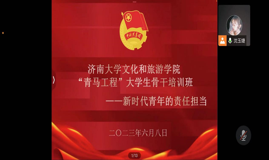濟南大學文化和旅游學院“思想的力量”主題宣講活動——“青馬工程”第二期培訓班于2023年6月8日開講。參與本次培訓的有濟南大學文化和旅游學院青馬工程全體成員。