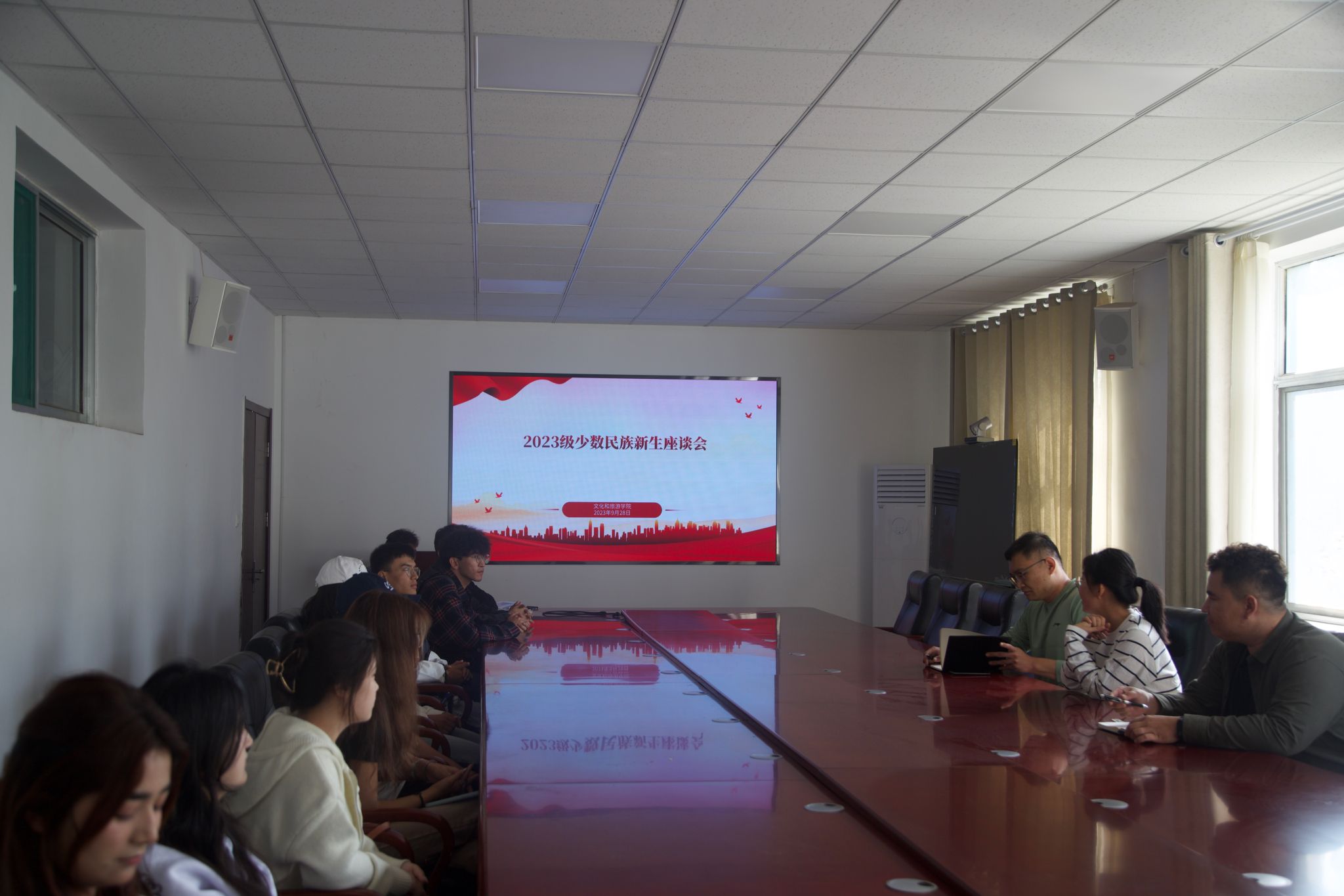 為進一步了解2023級新疆籍少數民族學生的生活、學習和思想動態,促進少數民族學生更好適應大學生活,進一步加強與學生的溝通和交流,做好學生服務與管理工作。9月28日上午,學院在文旅樓212會議室召開2023級新疆籍少數民族新生座談會。學院學生工作管理辦公室主任崔藝馨、學校少數民族專職輔導員買爾當·坎買爾、2023級輔導員老師以及12名新疆籍少數民族學生參加本次座談會。