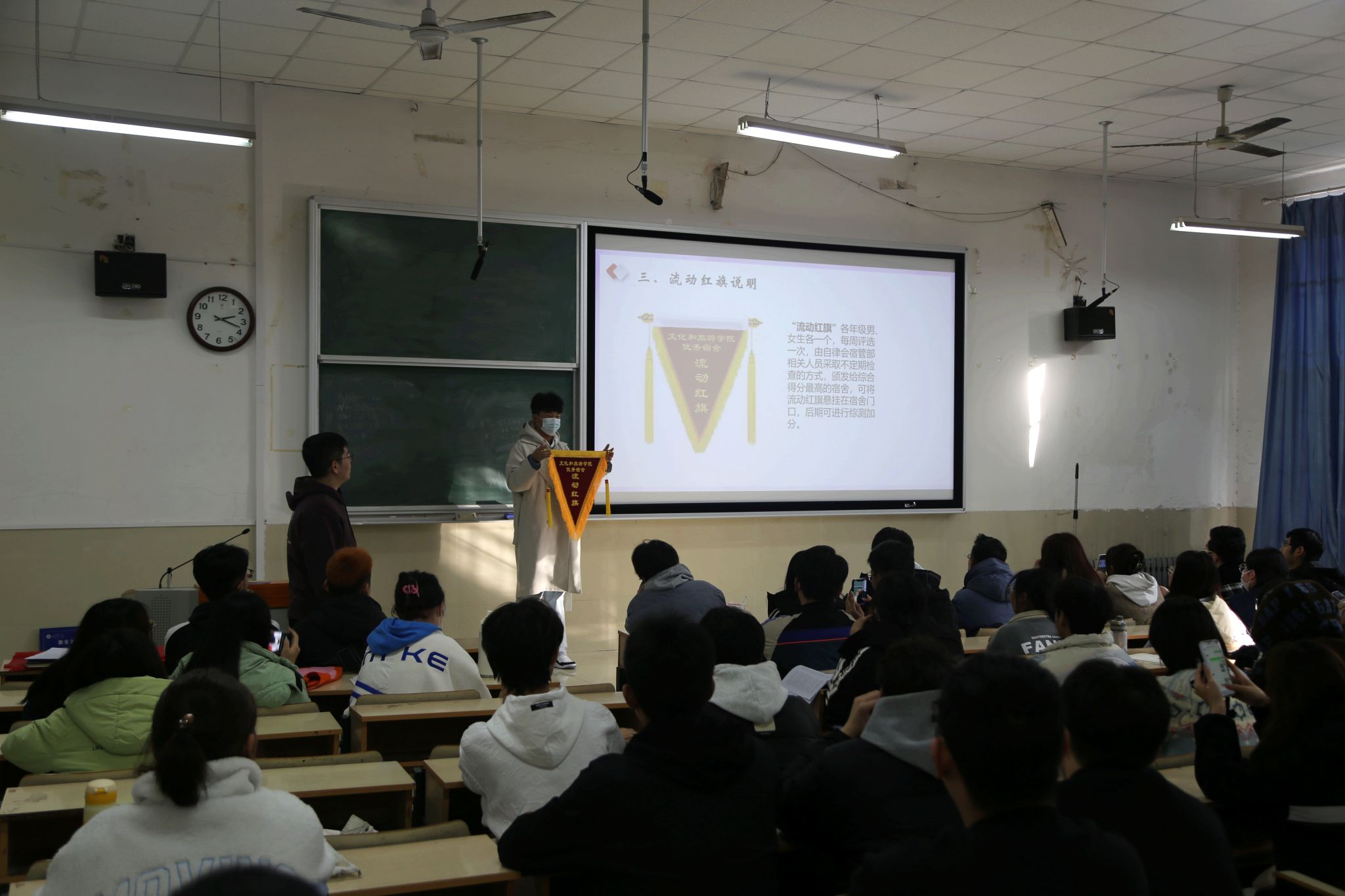 會議圍繞宿舍安全整治、宿舍長職責、宿舍建設、宿舍文化節四個方面展開。首先,學辦老師傳達了學院黨委對本次大會的囑托與要求,就近期安全衛生檢查中存在的突出問題進行了強調,對檢查中的優秀宿舍進行了表揚,對不合格宿舍提出了整改措施。特別是宿舍物品擺放、衛生死角清理、以及宿舍內嚴禁吸煙酗酒、嚴禁使用大功率電器、私拉電線等問題進行了重點強調,叮囑宿舍長們一定要監督和提醒到宿舍成員,養成人走斷電的好習慣。其次是防詐騙方面,務必樹牢反詐意識,務必下載并注冊反詐App,提示學生時刻注意防騙,“不轉賬,不上當”,謹防詐騙。最近因天氣寒冷生病的學生較多,希望學生們注意個人衛生,身體不適及時就醫,學院將繼續密切關注,關心學生的身體健康。宿舍長職責方面,著重強調宿舍長是宿舍內部管理的責任人,是宿舍文明建設的核心,全面負責本宿舍的安全衛生、作息就寢以及宿舍文化建設等工作,尤其對于調解宿舍成員關系、化解宿舍矛盾、報告突發事件、晚間查寢、日常報修、防范電信詐騙等方面,宿舍長發揮著重要作用。宿舍建設方面,會議緊緊圍繞凈化宿舍、美化宿舍和制度建設進行闡述,引導同學們勤勞自律,努力將宿舍打造成整潔溫暖的休息場所,并重點強調了違反宿舍管理規定相應的處分。宿舍文化節方面,將活動的重點部分進行闡明,鼓勵學生積極參與,共同營造和諧文明、健康向上的宿舍氛圍。