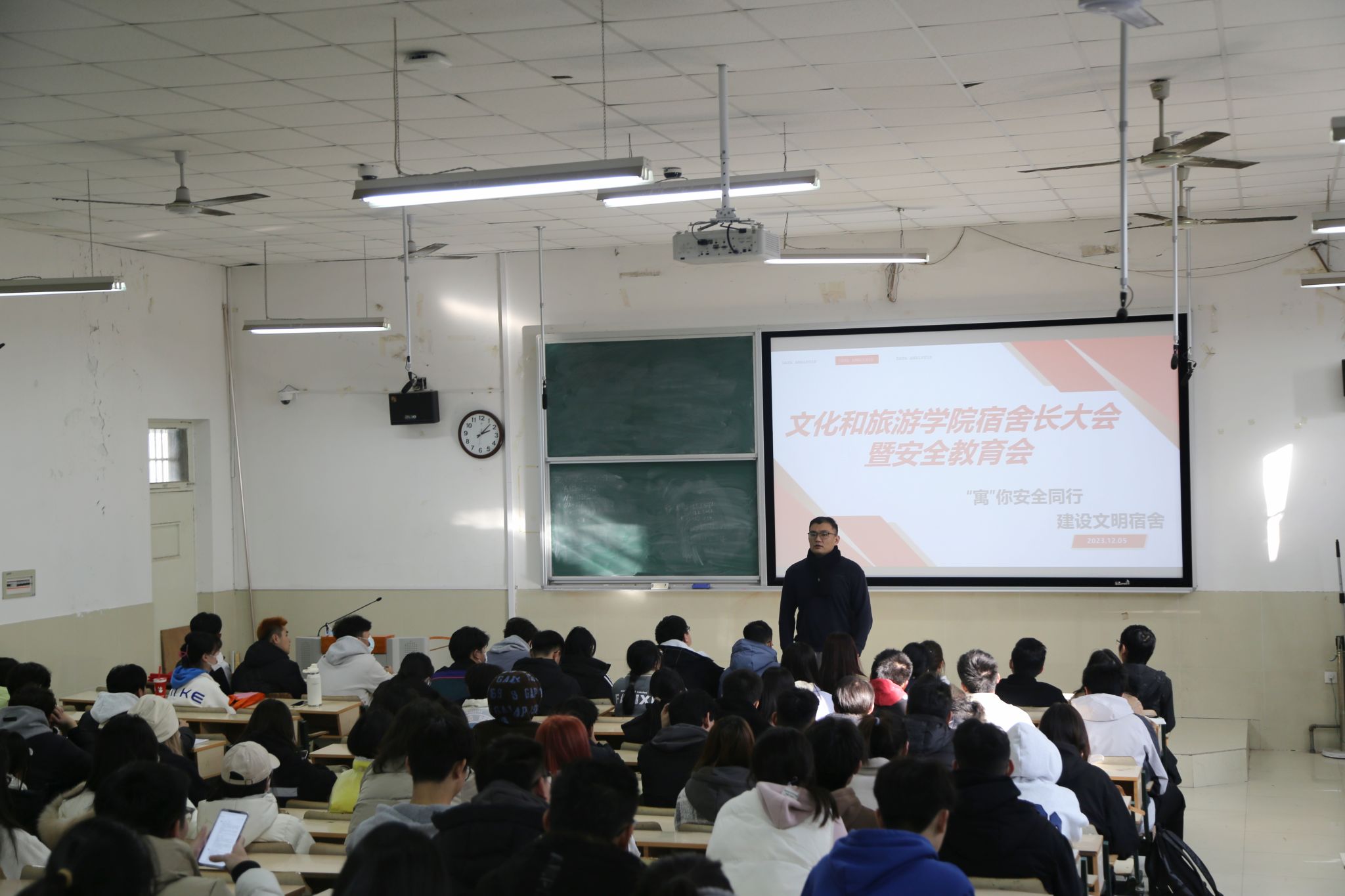 為深入貫徹落實《濟南大學校園安全隱患排查整治月學生工作專項方案》和《關于開展濟南大學2023年學生公寓“安全活動月”的通知》,加強我院宿舍安全文明建設,推動學風建設,切實做好我院宿舍管理工作,提升宿舍長隊伍的責任意識和工作水平。近日,文化和旅游學院召開“‘寓’你安全同行,建設文明宿舍”宿舍長大會暨安全教育會。學辦老師、學院學生自律委員會成員、各班班長和宿舍長參加會議。