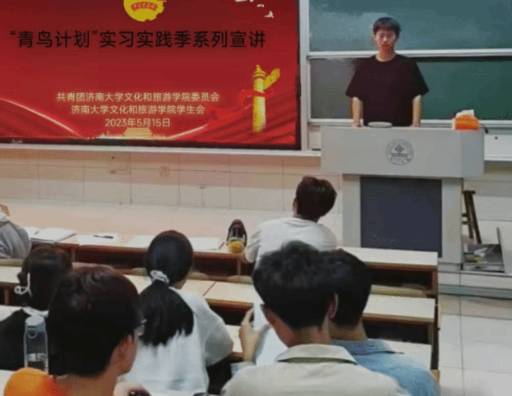 為了給同學們提供一個了解社會、增長見識、提升技能的機會,同時激發他們的返鄉發展積極性和主動性,促進青年人才回歸家鄉創業就業,濟南大學文化和旅游學院特于2023年5月15日舉辦“青鳥計劃”實習實踐季宣講活動。