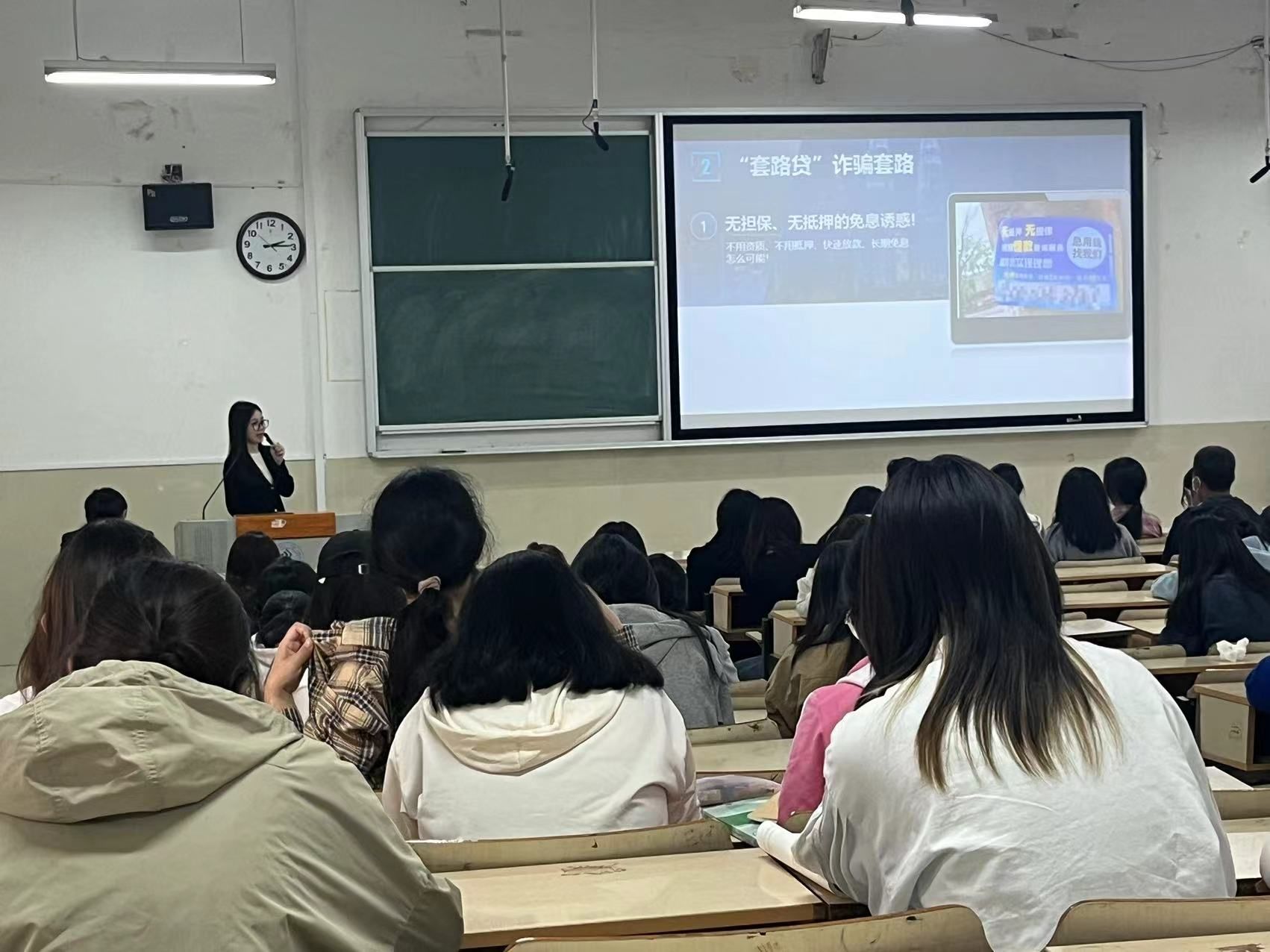 宣講會上,銀行專員以實際案例為切入點,詳細講解了兼職刷單、冒充熟人、網絡貸款等常見騙局的運作機制,立足學生群體金融需求,逐一對常見金融服務進行了深入淺出、耐心專業的講解分析,同時,就如何保護個人信息安全、識別金融詐騙等方面也進行了詳細的說明和指導。