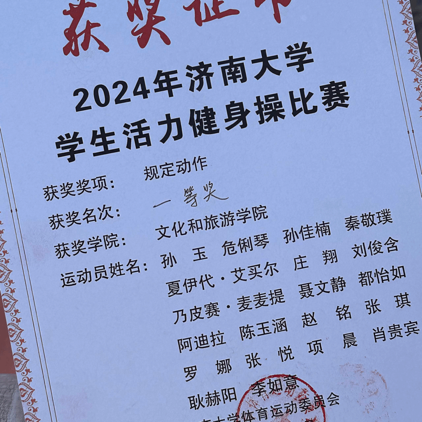 我院健身操舞隊由呂龍飛老師任教練,孫玉同學為領隊,共20名同學組成。他們參加了規定動作《上春山》和自選動作《Ice Cream》兩個項目的角逐。在規定動作項目比賽中,我院健身操舞隊脫穎而出,名列前茅,斬獲一等獎。孫玉同學更是以優美的舞姿、大氣的風格榮獲“明星隊員”。在自選動作項目比賽中,我院健身操舞隊分隊繼續保持著良好的競技狀態,用自己不凡的實力,奮力前行,盡顯風華。特別是夏伊代·艾買爾同學,動作流暢自然,精準到位,展示出我院大學生良好的精神風貌,榮獲最佳表演獎。在此次比賽中,我院健身操舞隊取得規定動作一等獎、自選動作二等獎的優異成績。