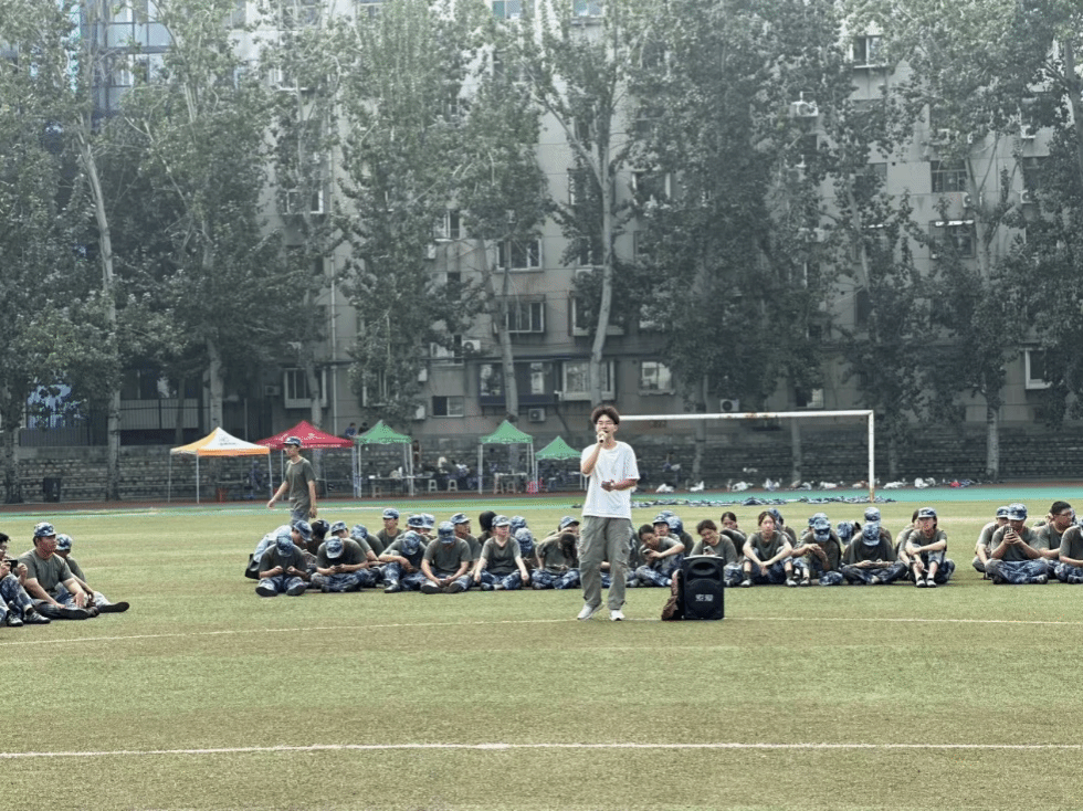 本次“軍訓送”活動在耿赫陽同學的主持下拉開帷幕。軍訓場上,表演人員們以歌傳情,精心籌備“軍訓送”演出,悠揚的歌聲和歡快的旋律驅散了新生們訓練的疲憊。