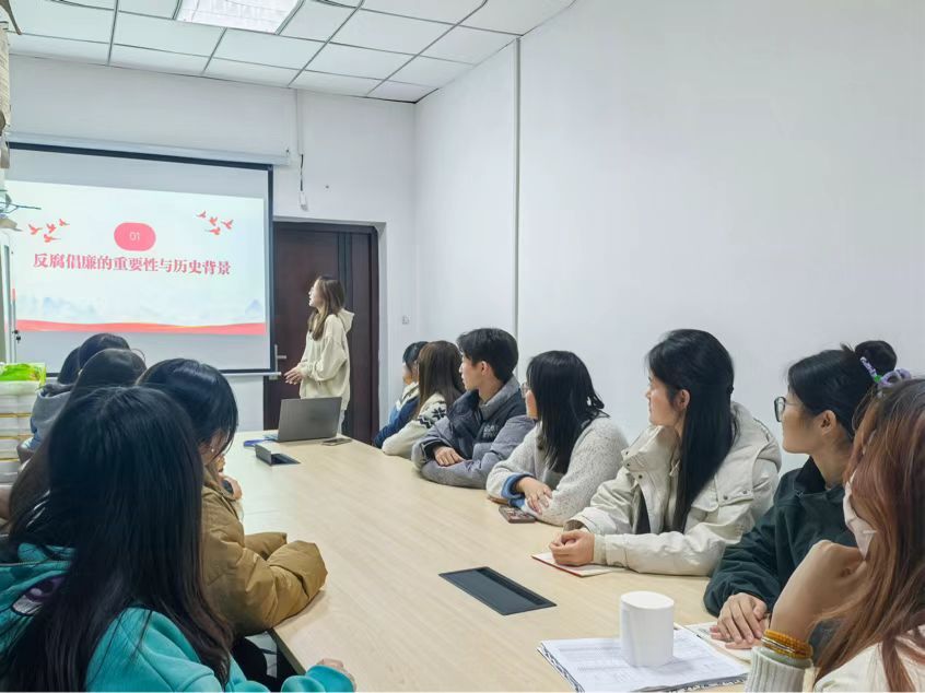本次課程主講人韓金汝詳細闡述了建設反腐防線的重大意義,并對清廉家園的概念、構建過程中的關鍵環節以及反腐工作對社會發展的深遠影響等核心問題進行講解,特別強調了在維護社會公平正義、推動國家長治久安進程中,筑牢反腐防線的重要性。此外,主講人安排同學們觀看反腐倡廉微電影,傳達違反規定的精神典型問題,結合實例教育大家堅守廉潔底線,系好第一粒扣子,讓同學們以案為鑒知清廉。韓金汝指出,“唯有深刻理解、全員參與、持之以恒,我們方能堅實筑牢反腐防線,明確構建清廉家園的目標、任務與路徑,為廉政建設工作的根基奠定堅實基礎。”