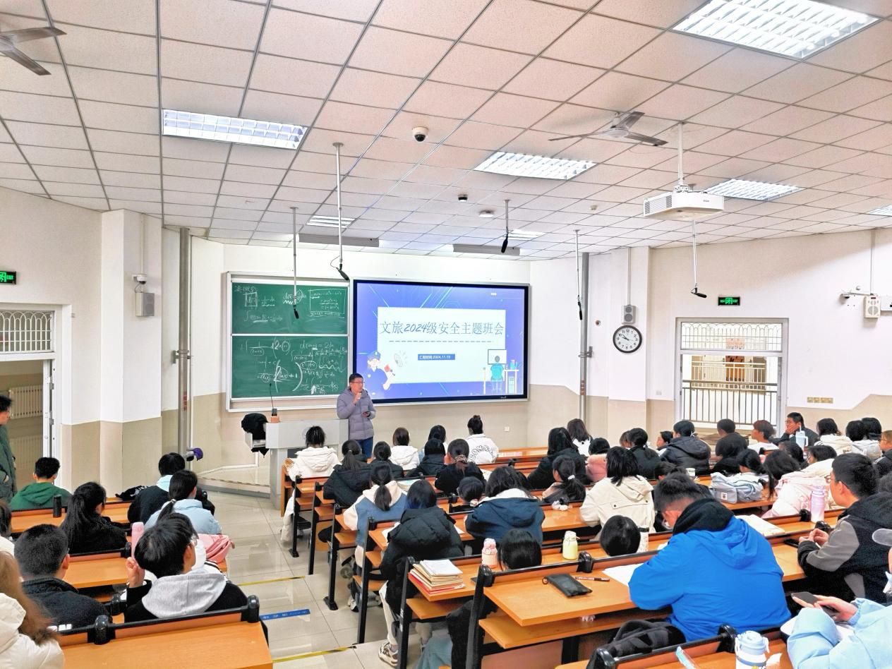 為提高學生的安全意識,筑牢校園安全堅實防線,2024年11 月19日下午4 點濟南大學黨委保衛部在舜耕校區經管樓報告廳召開2024年濟南大學安全教育大會,學院黨委副書記、副院長信蘇珊,學院團委書記兼24級新生輔導員呂龍飛,文化和旅游學院全體學生骨干參與此次會議并在會后召開班級會議傳達會議精神。