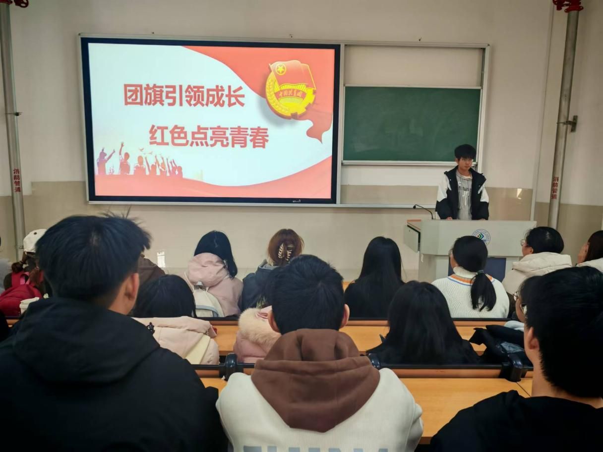 為提升團員青年的思想政治覺悟,增強對中國共產主義青年團的認同感。文化和旅游學院于11月30日在D3J301召開了"團旗引領成長,紅色點亮青春"主題團課,學院各支部共計80余名團員青年參與。