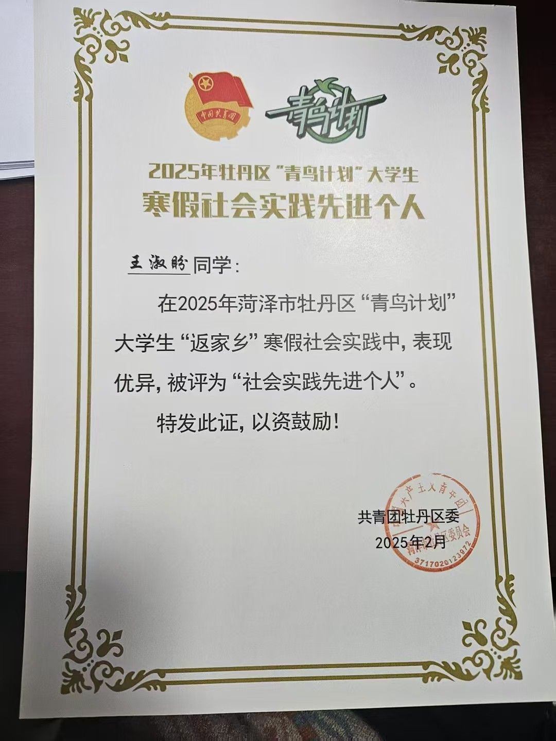 寒假期間,文化和旅游學(xué)院傳媒2302王淑盼同學(xué)通過(guò)“青鳥計(jì)劃”平臺(tái),在菏澤市牡丹區(qū)胡集鎮(zhèn)人民政府鎮(zhèn)團(tuán)委開展為期14天的寒假社會(huì)實(shí)踐,以專業(yè)行動(dòng)服務(wù)家鄉(xiāng)發(fā)展。