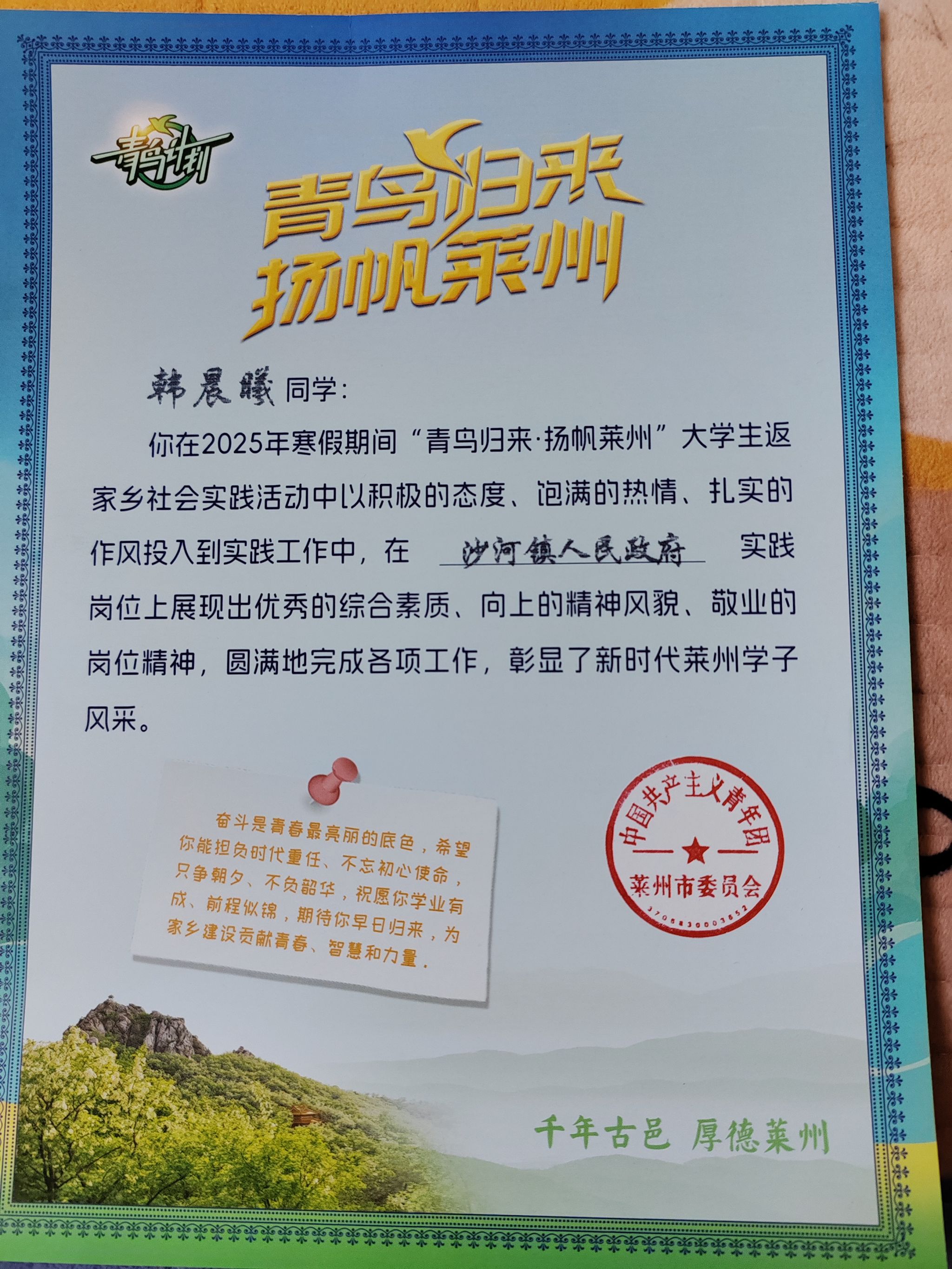 2025年1月13日,旅管23H2韓晨曦走進沙河鎮人民政府黨政辦公室,完成了為期36天的基層實踐。她通過處理用章信息錄入、輿情監測分析等核心工作,將課堂所學的辦公軟件操作、新聞寫作等專業知識融入政府實務。面對原始數據模糊缺失的難題,她創新采用Excel數據驗證功能構建標準化錄入模板;針對輿情分析深度不足的瓶頸,通過建立關鍵詞追蹤機制精準捕捉熱點,結合旅游管理專業知識撰寫多篇具有預警價值的分析報告。