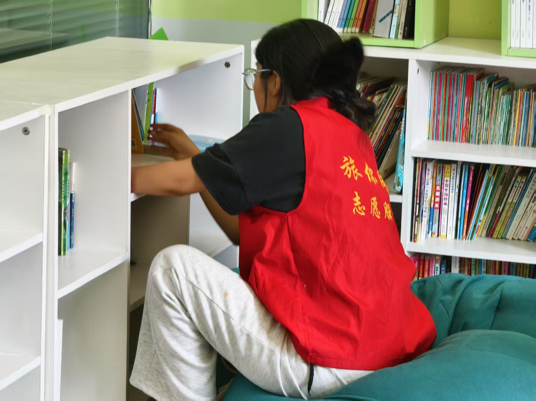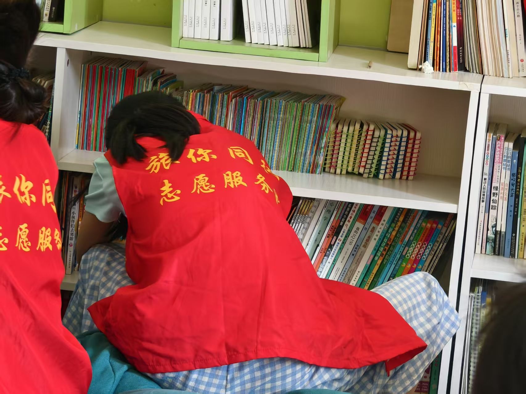 志愿者們投身于書籍整理工作中,宛如在知識的星河中點亮一盞盞明燈。面對雜亂堆放的書籍,他們化身分類能手,將教材、課外讀物、雜志等逐一梳理歸位。那些因歲月流逝而破損的書籍,在志愿者們的巧手下重煥生機。膠水與膠帶化作神奇的畫筆,修補的不僅是書頁的裂痕,更是守護著每本書籍承載的珍貴記憶。正如志愿者郁菀茹所言:“每一本書都承載著獨特的故事,我們整理的不僅是書籍,更是在呵護孩子們心中的溫暖回憶。”整理完畢后,整齊排列的書架宛如知識的殿堂,靜靜等待著孩子們開啟探索的旅程。